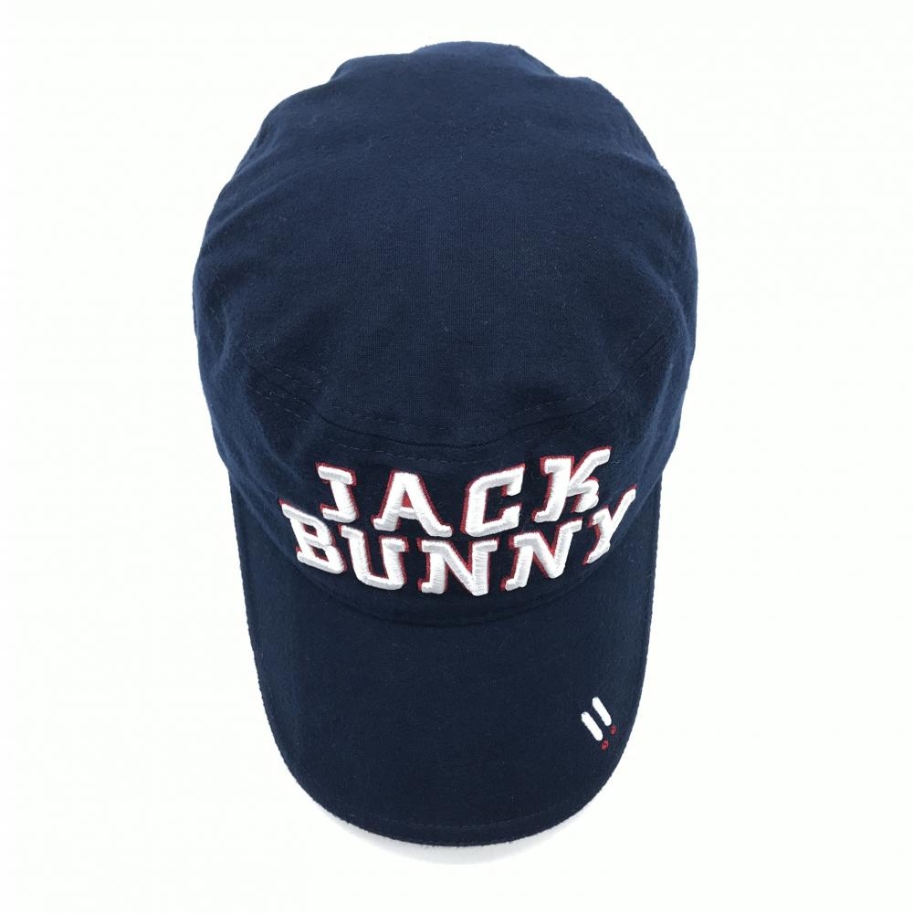 【美品】ジャックバニー ワークキャップ ネイビー×白 立体ロゴ 微起毛 FR ゴルフウェア Jack Bunny