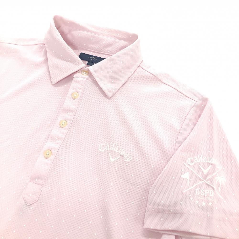 キャロウェイ 半袖ポロシャツ ライトピンク×白 ドット 胸ロゴ メンズ L ゴルフウェア Callaway