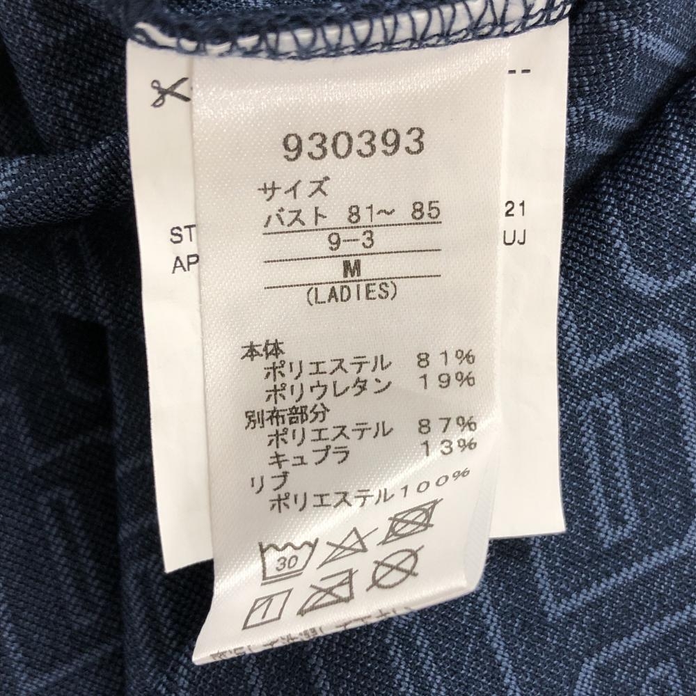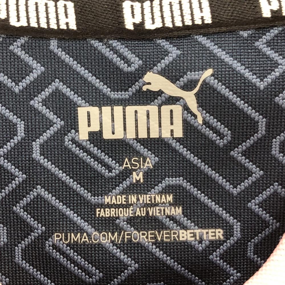 【超美品】プーマ 半袖ポロシャツ ネイビー ロゴ総柄 襟ピンク レディース M ゴルフウェア PUMA