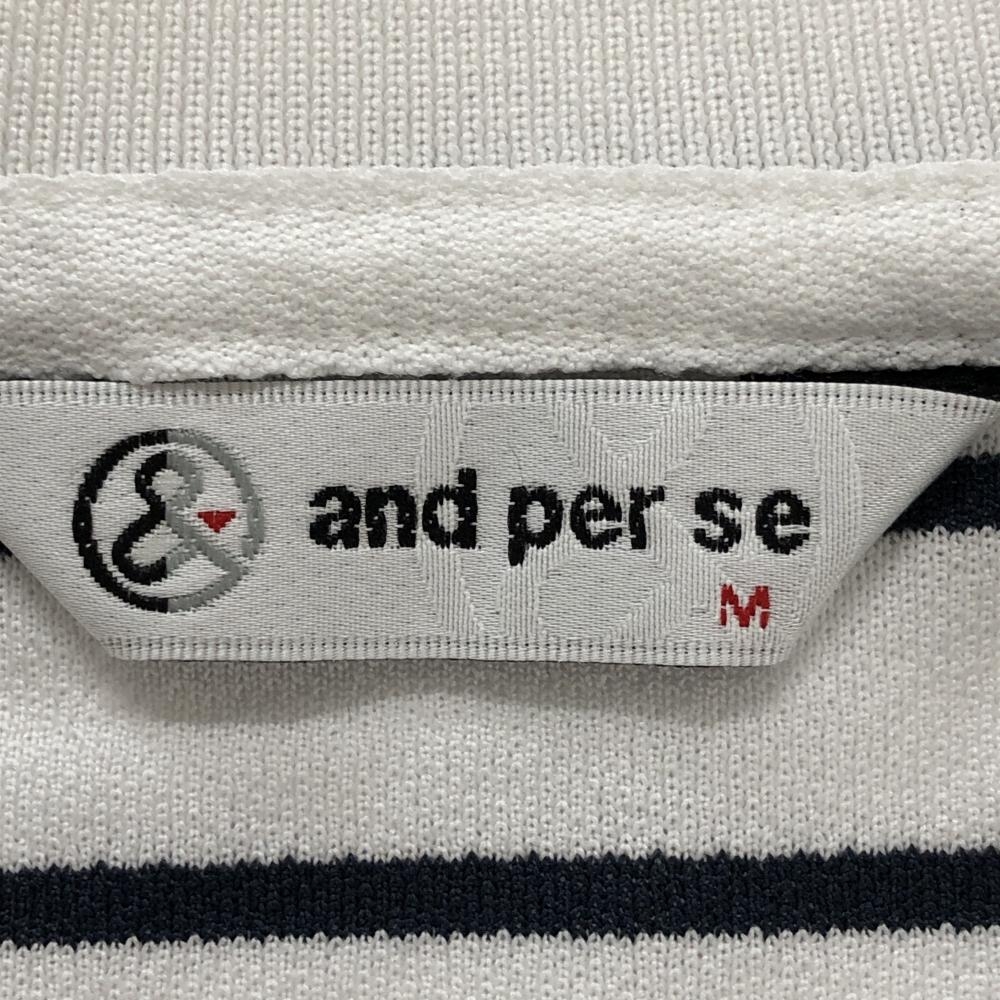 【超美品】アンパスィ 半袖ポロシャツ 白×ネイビー ボーダー ワッペン レディース M ゴルフウェア and per se
