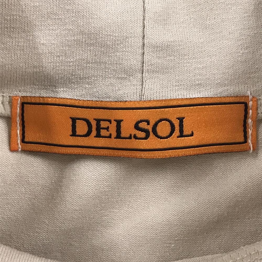 【超美品】デルソル 半袖ハイネックシャツ ベージュ×カーキ 背面英字 メンズ M ゴルフウェア DELSOL