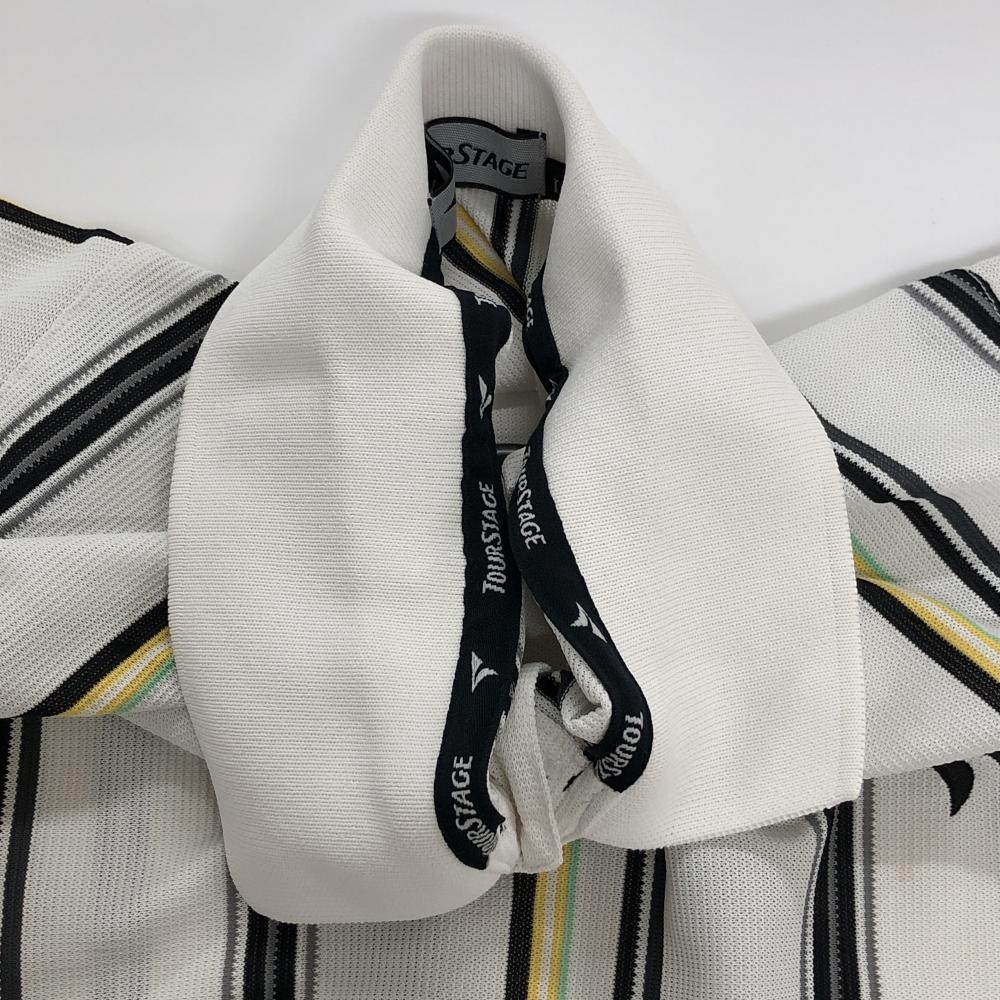 テーラーメイド 半袖ポロシャツ 白×黒×イエロー ストライプ 透け感 メンズ L ゴルフウェア TaylorMade