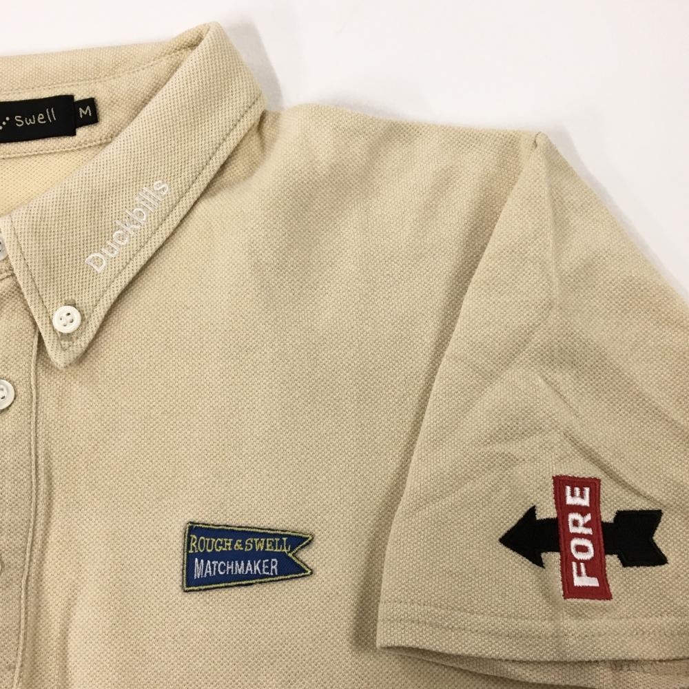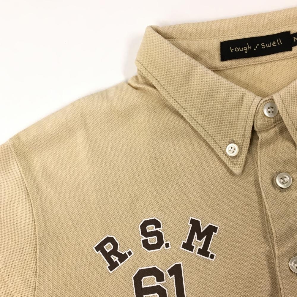 ラフアンドスウェル 半袖ポロシャツ ベージュ 刺しゅうワッペン ボタンダウン メンズ M ゴルフウェア rough&swell