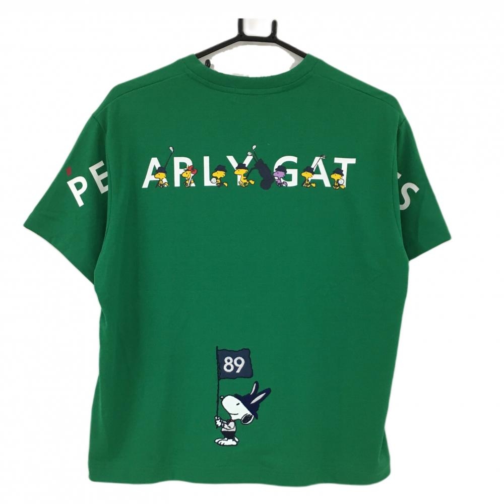 【新品】パーリーゲイツ×PEANUTS Tシャツ グリーン スヌーピー 背面プリント レディース 1(M) ゴルフウェア 2024年モデル PEARLY GATES