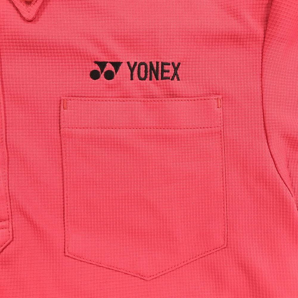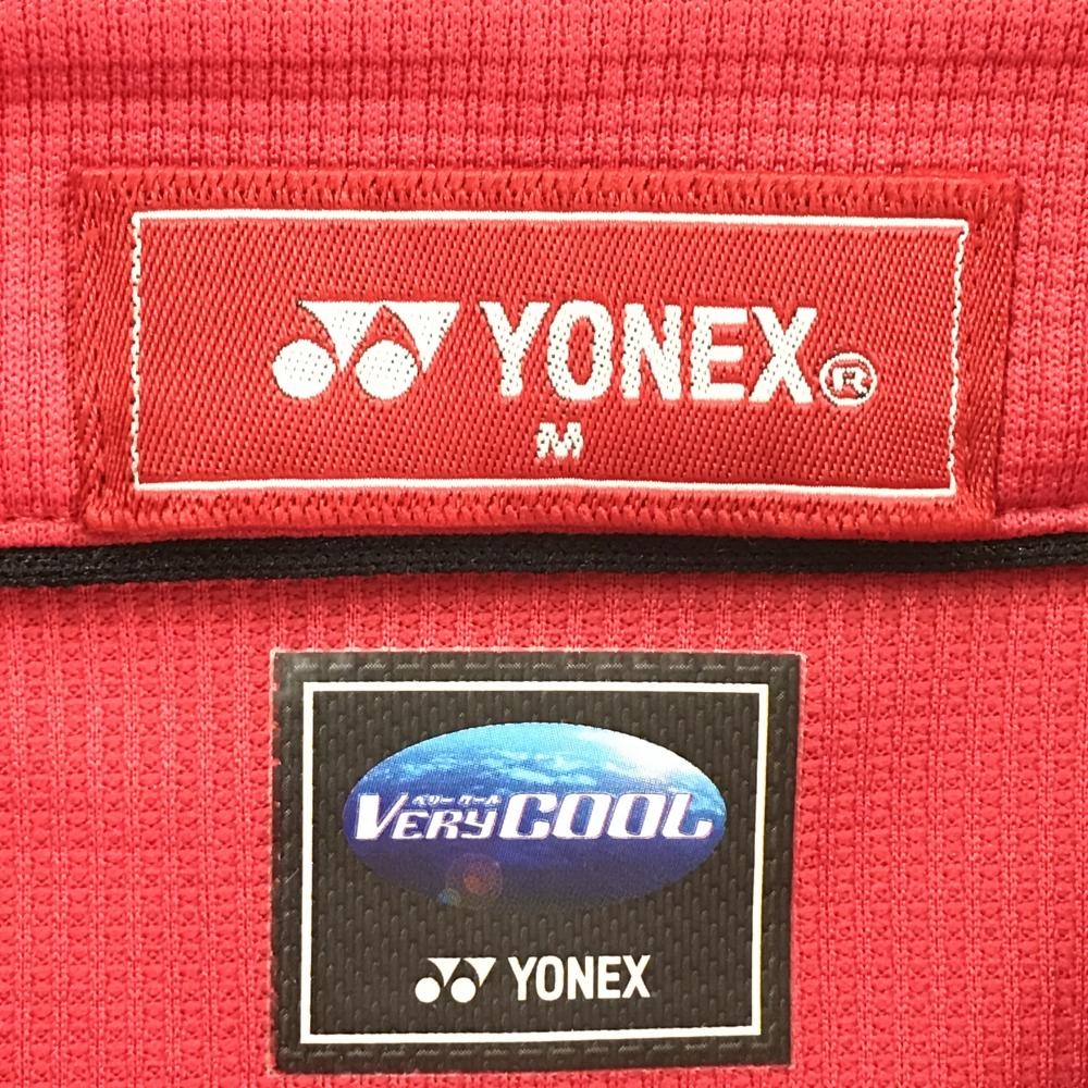 【美品】ヨネックス 半袖ポロシャツ レッド ロゴ黒 ボタンダウン COOL メンズ M ゴルフウェア YONEX