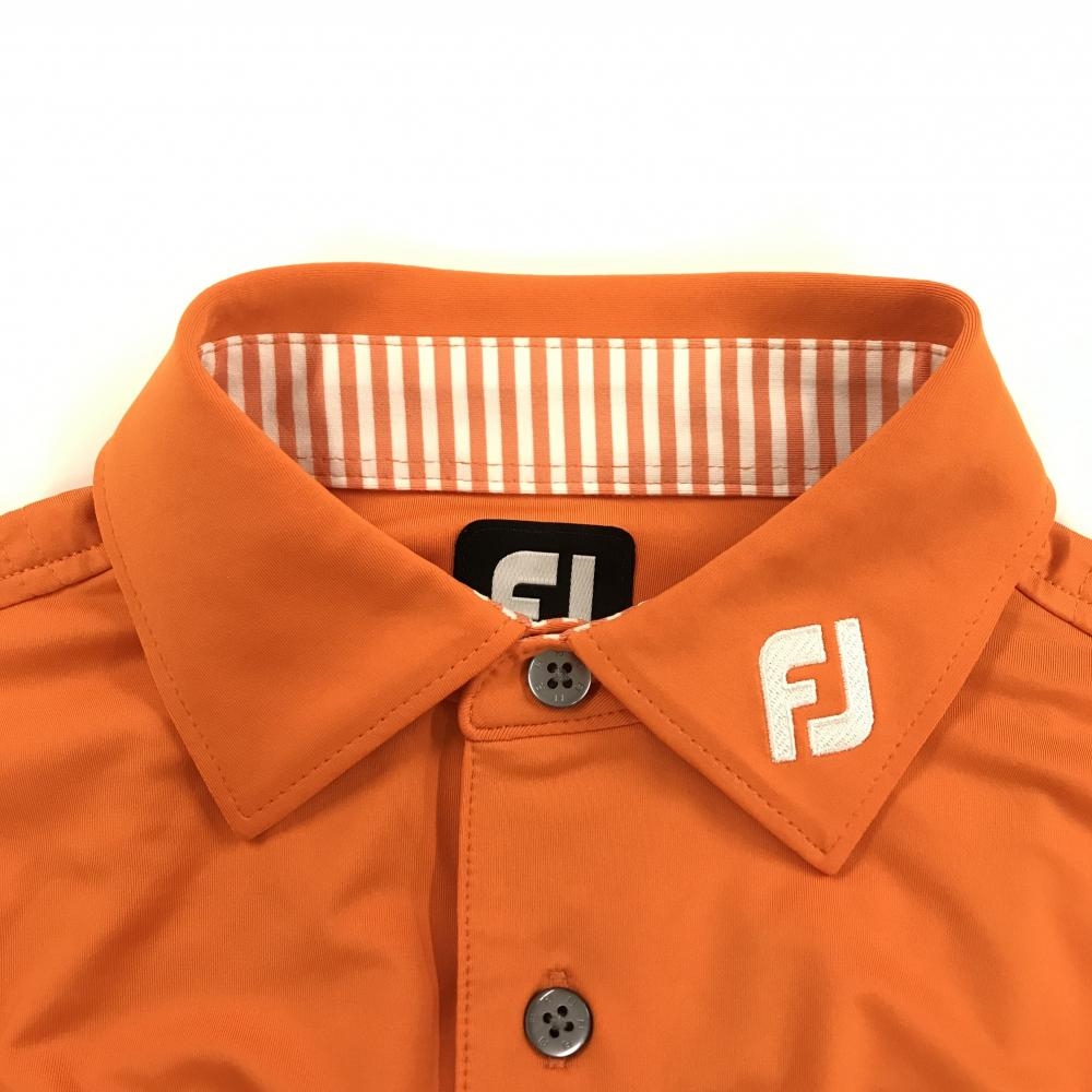 【超美品】フットジョイ 半袖ポロシャツ オレンジ 襟ロゴ白 メンズ M ゴルフウェア FootJoy