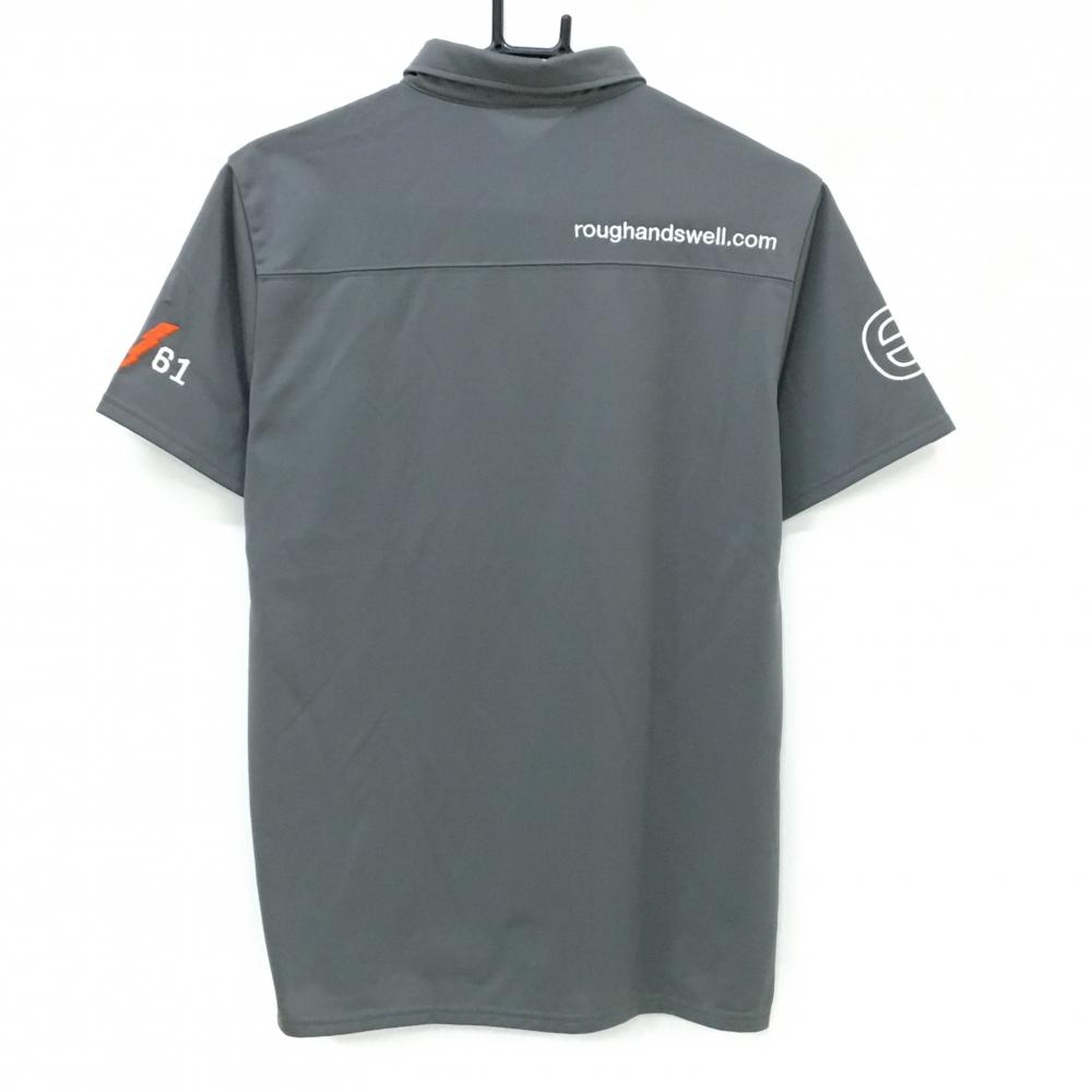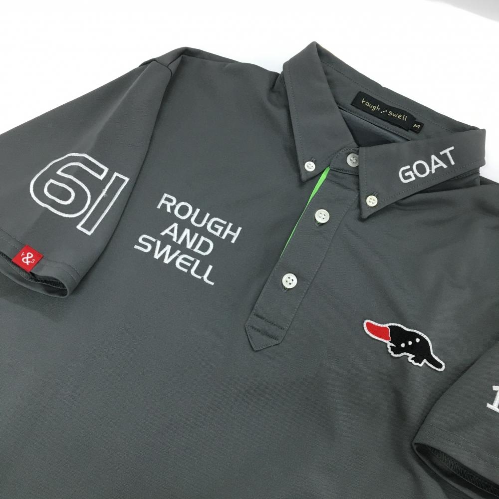【超美品】ラフアンドスウェル 半袖ポロシャツ グレー ロゴ刺しゅう ボタンダウン メンズ M ゴルフウェア rough&swell
