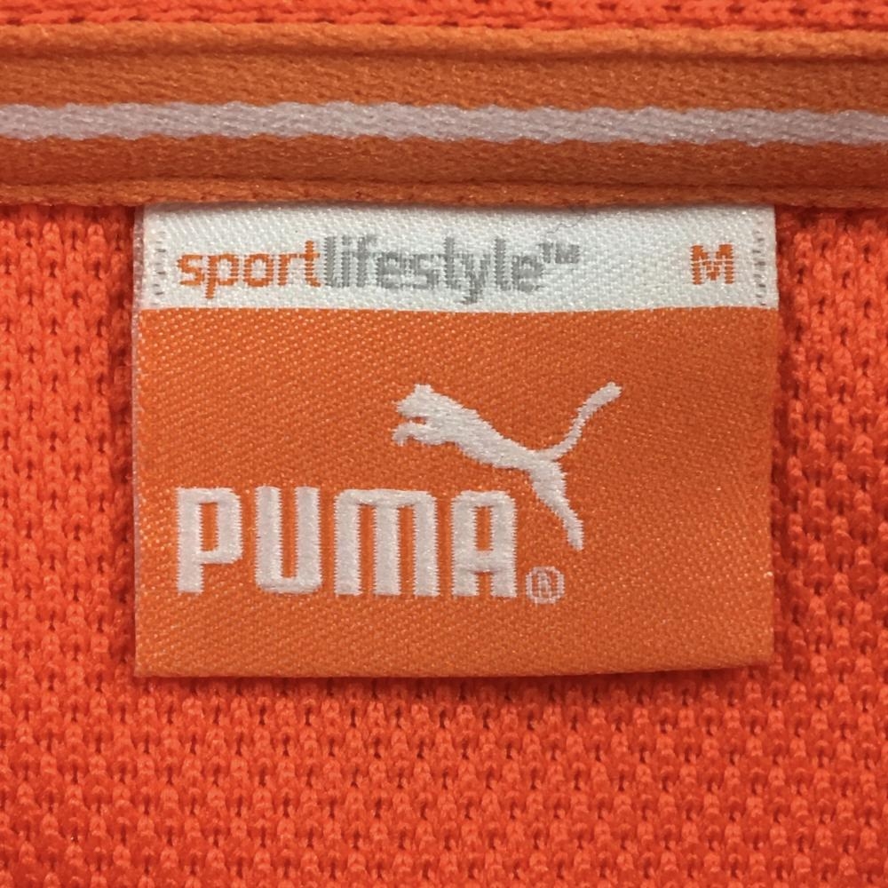 【美品】プーマ 半袖ポロシャツ オレンジ 袖口斜めストライプ 胸ポケット メンズ M ゴルフウェア PUMA