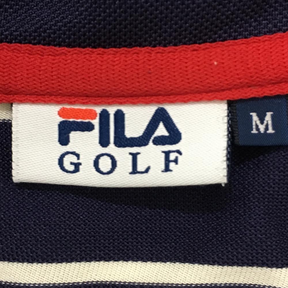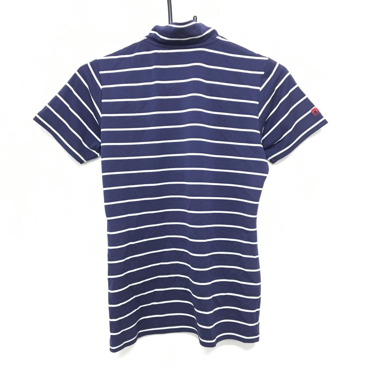 【超美品】フィラゴルフ 半袖ハイネックシャツ ネイビー×白 ボーダー ハーフジップ レディース M ゴルフウェア FILA GOLF