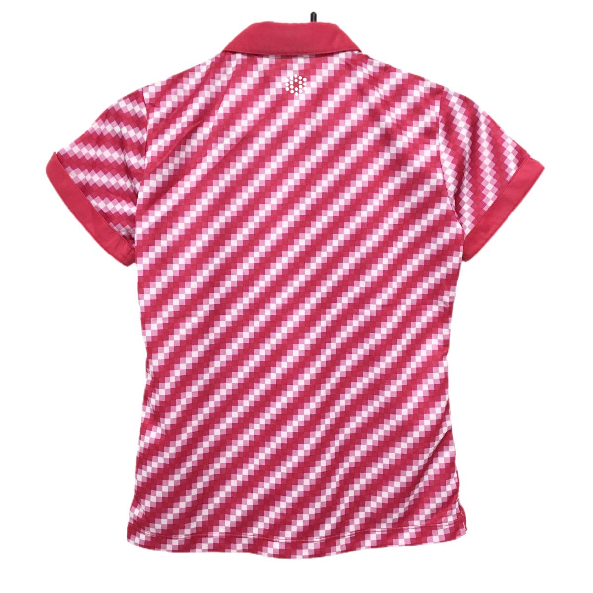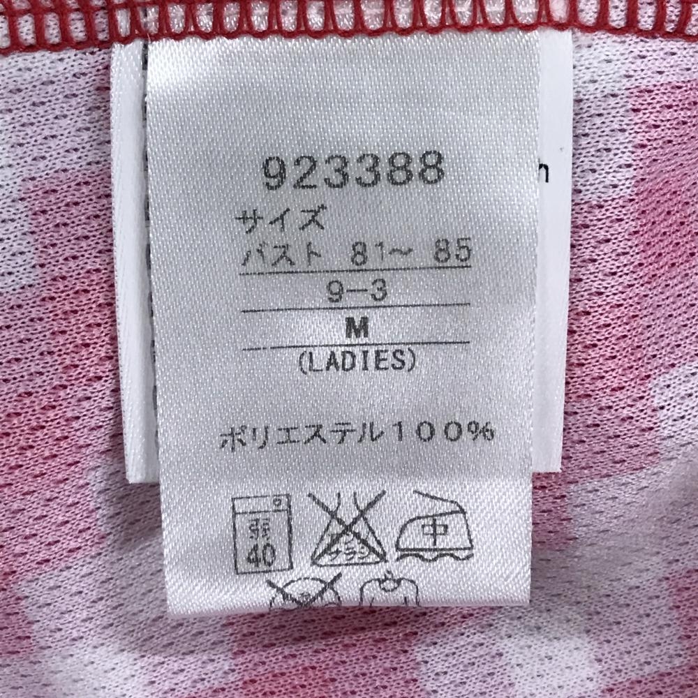 【超美品】プーマ 半袖ポロシャツ レッドピンク×白 モザイク調総柄 ロゴ レディース M ゴルフウェア PUMA