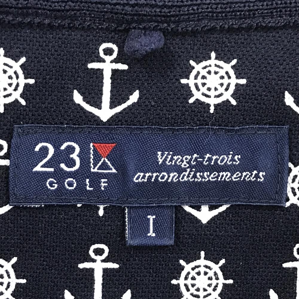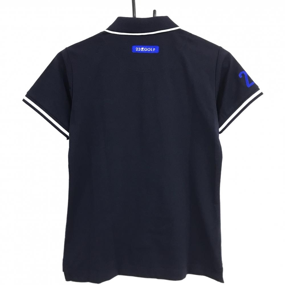 【超美品】23区ゴルフ 半袖ポロシャツ ネイビー×白 襟・袖口ライン レディース I(M) ゴルフウェア 23区