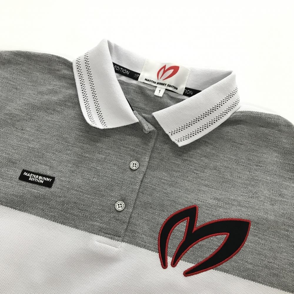 【超美品】マスターバニー 半袖ポロシャツ 白×グレー ボーダー 15周年 レディース 1(M) ゴルフウェア 2025年モデル MASTER BUNNY EDITION