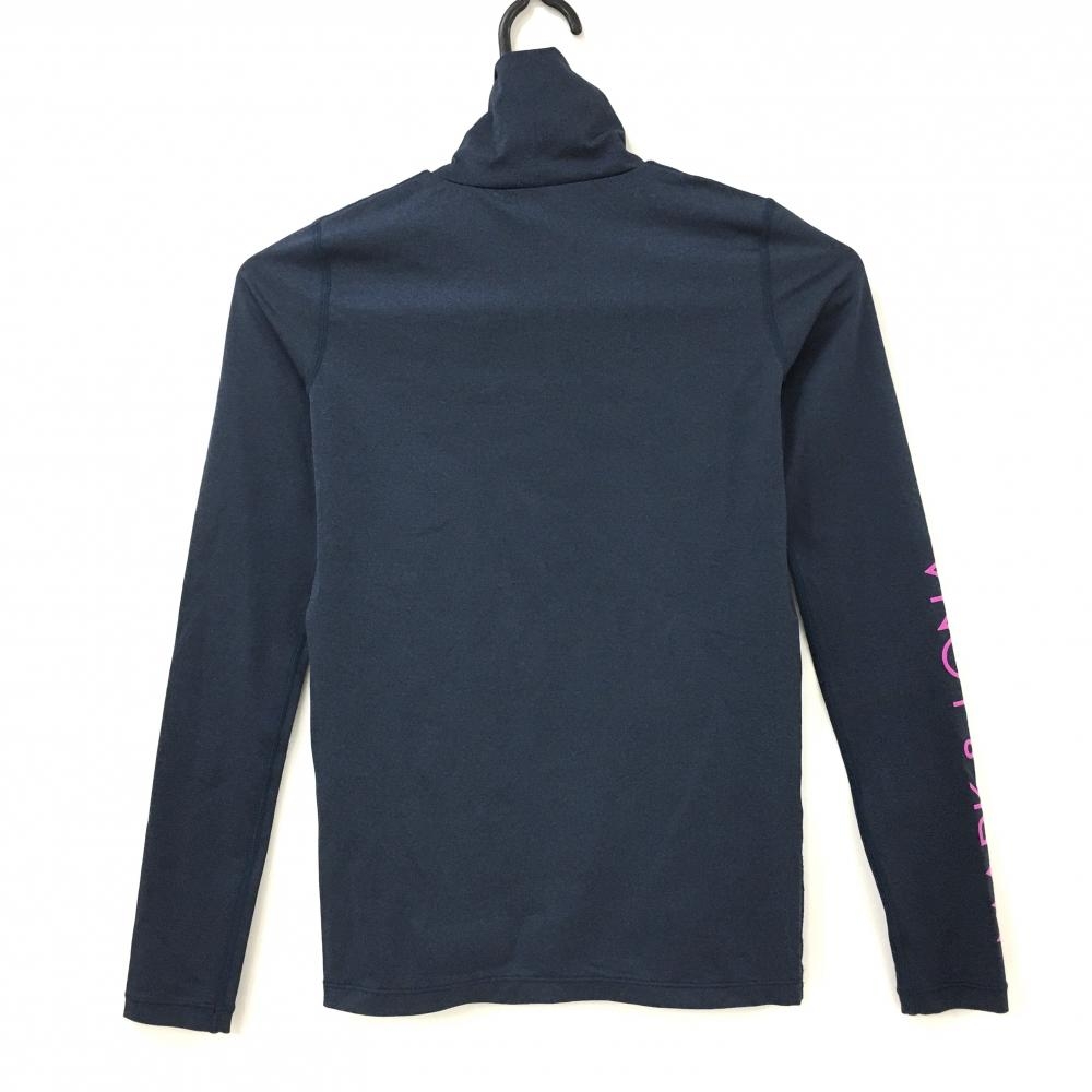 【超美品】マークアンドロナ 長袖ハイネックシャツ ネイビー×ピンク ビッグスカル 袖ロゴ レディース 36(S) ゴルフウェア MARK&LONA