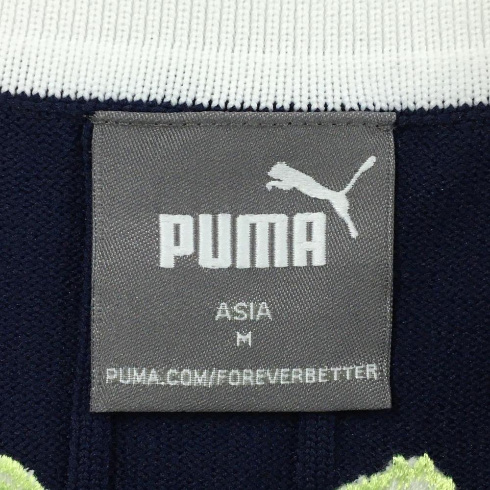 【超美品】プーマ 襟付きセーター ネイビー ストライプ調 凹凸生地 ハーフジップ ニット レディース M ゴルフウェア 2024年モデル PUMA