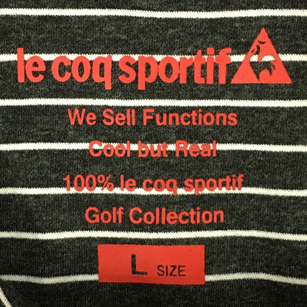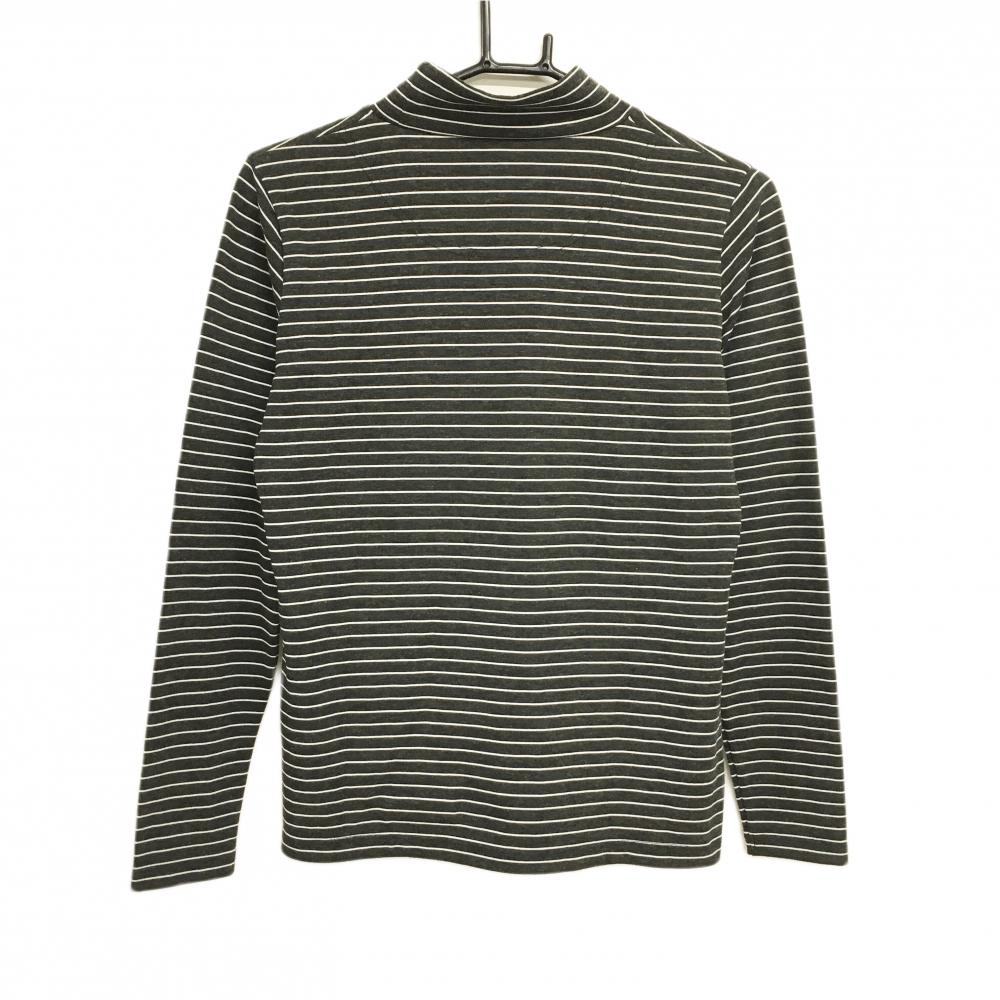 【超美品】ルコックゴルフ 長袖ハイネックシャツ 杢ダークグレー×白 ボーダー ロゴ刺しゅう レディース L ゴルフウェア le coq sportif
