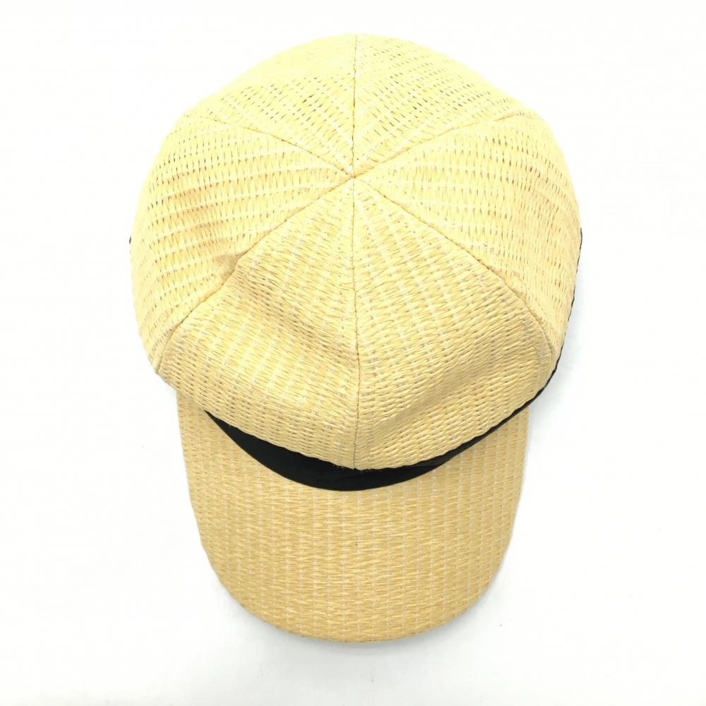 ビームスゴルフ キャップ イエロー系×黒 麦わら調 ロゴ刺しゅう 裏地付き 56-58cm ゴルフウェア BEAMS GOLF