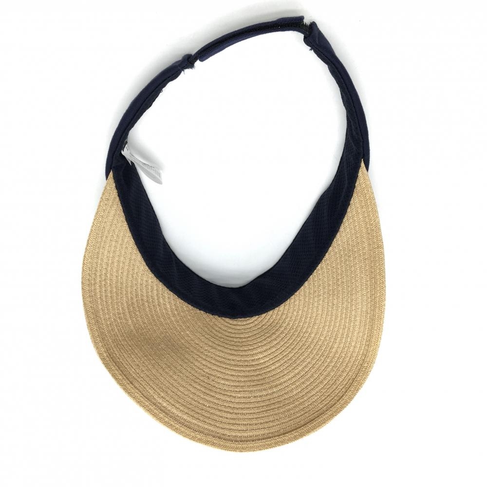 【美品】マスターバニー つば広サンバイザー ライトブラウン×ネイビー ロゴ刺しゅう レディース FR ゴルフウェア MASTER BUNNY EDITION