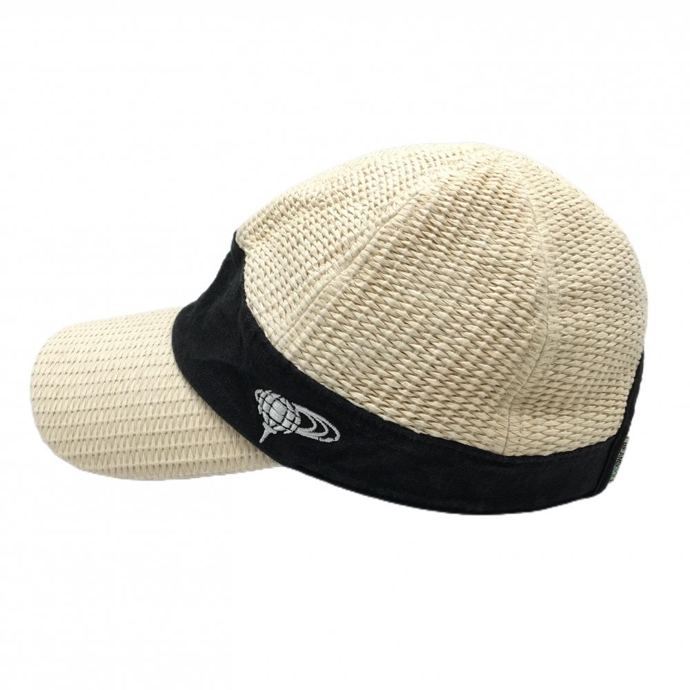 ビームスゴルフ キャップ ライトベージュ×黒 麦わら風 ロゴ刺しゅう ゴルフウェア BEAMS GOLF