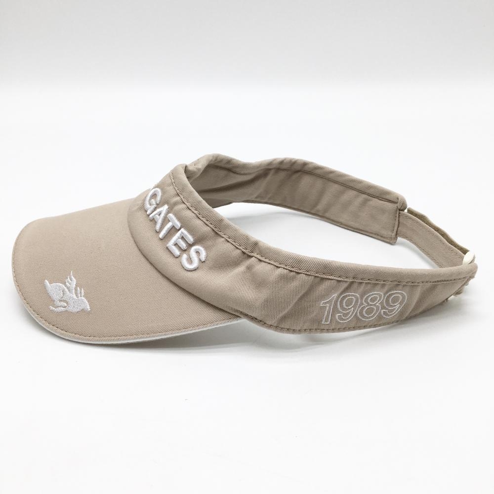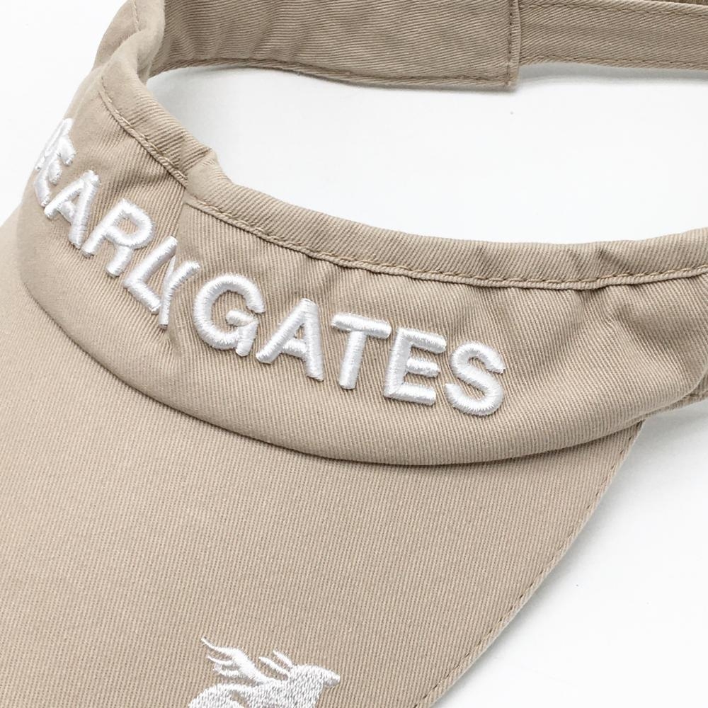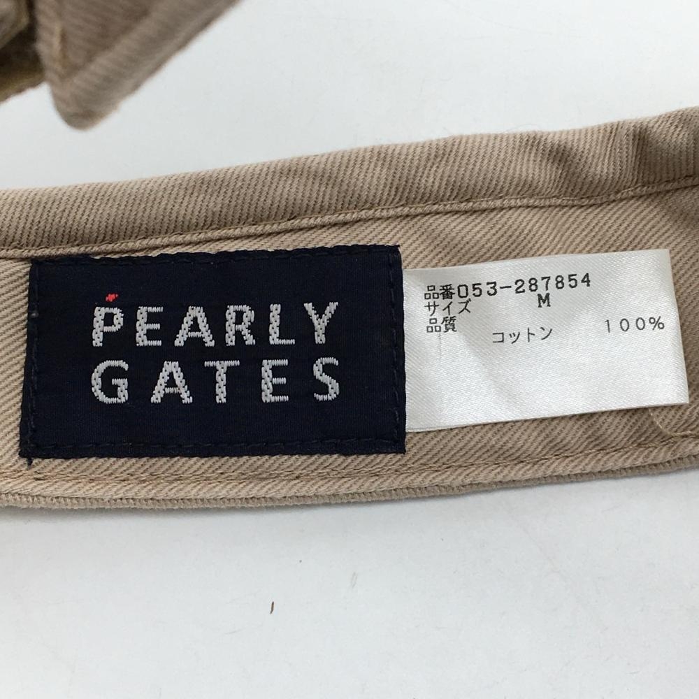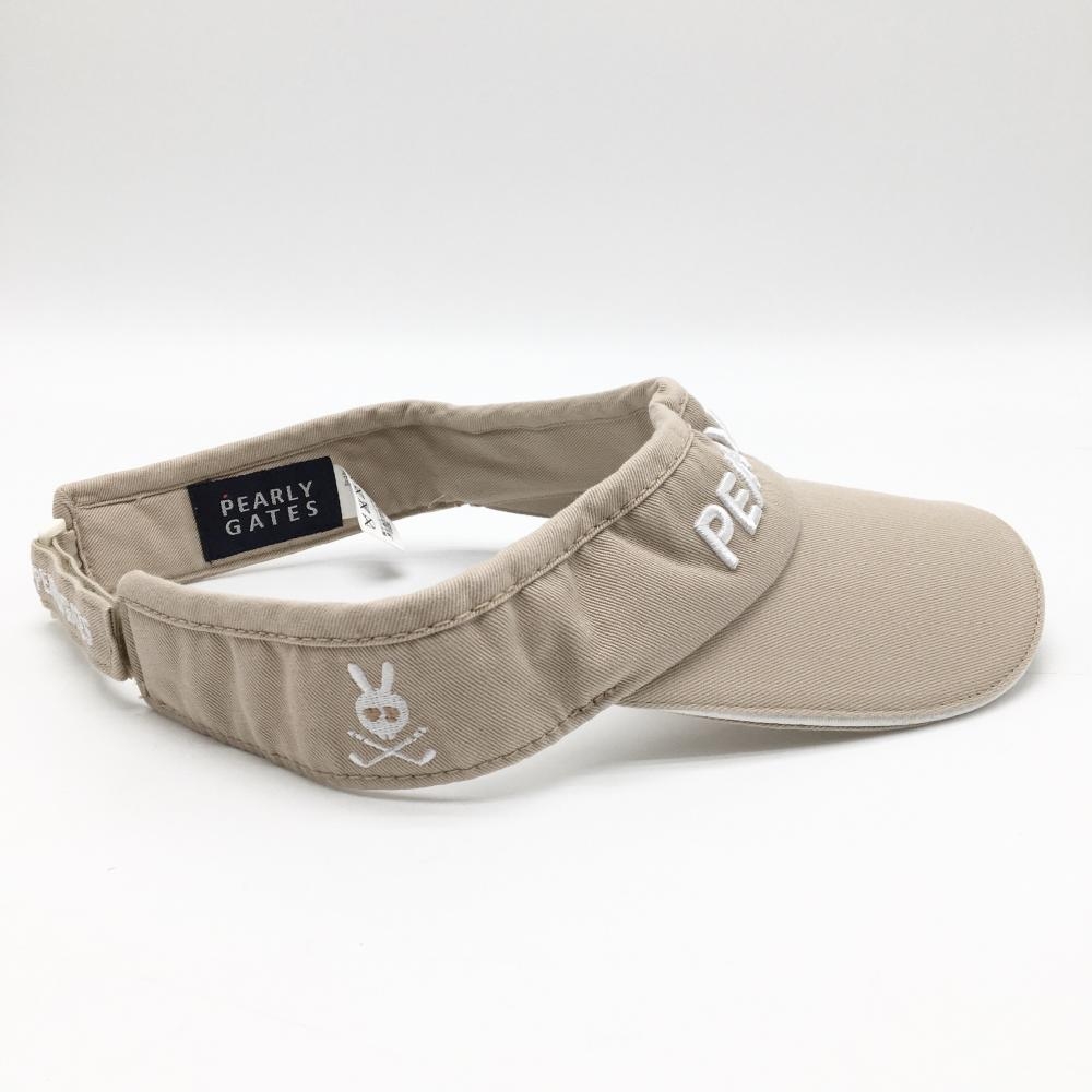 【美品】パーリーゲイツ サンバイザー ベージュ×白 立体ロゴ M ゴルフウェア PEARLY GATES