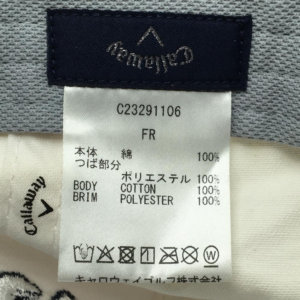 キャロウェイ フラットキャップ 白×ネイビー つばロゴ総柄 FR ゴルフウェア Callaway