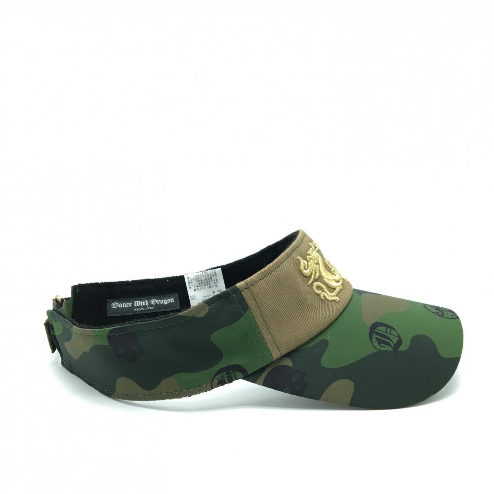 【美品】ダンスウィズドラゴン サンバイザー カーキ×ブラウン系 カモフラ 迷彩 99(F) ゴルフウェア Dance With Dragon
