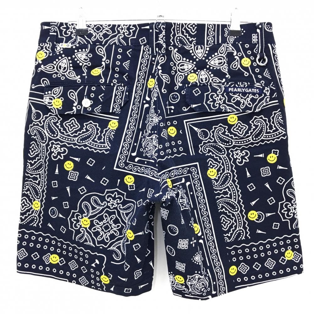 パーリーゲイツ ハーフパンツ ネイビー×白 総柄 ニコちゃん スマイル メンズ 5(L) ゴルフウェア PEARLY GATES