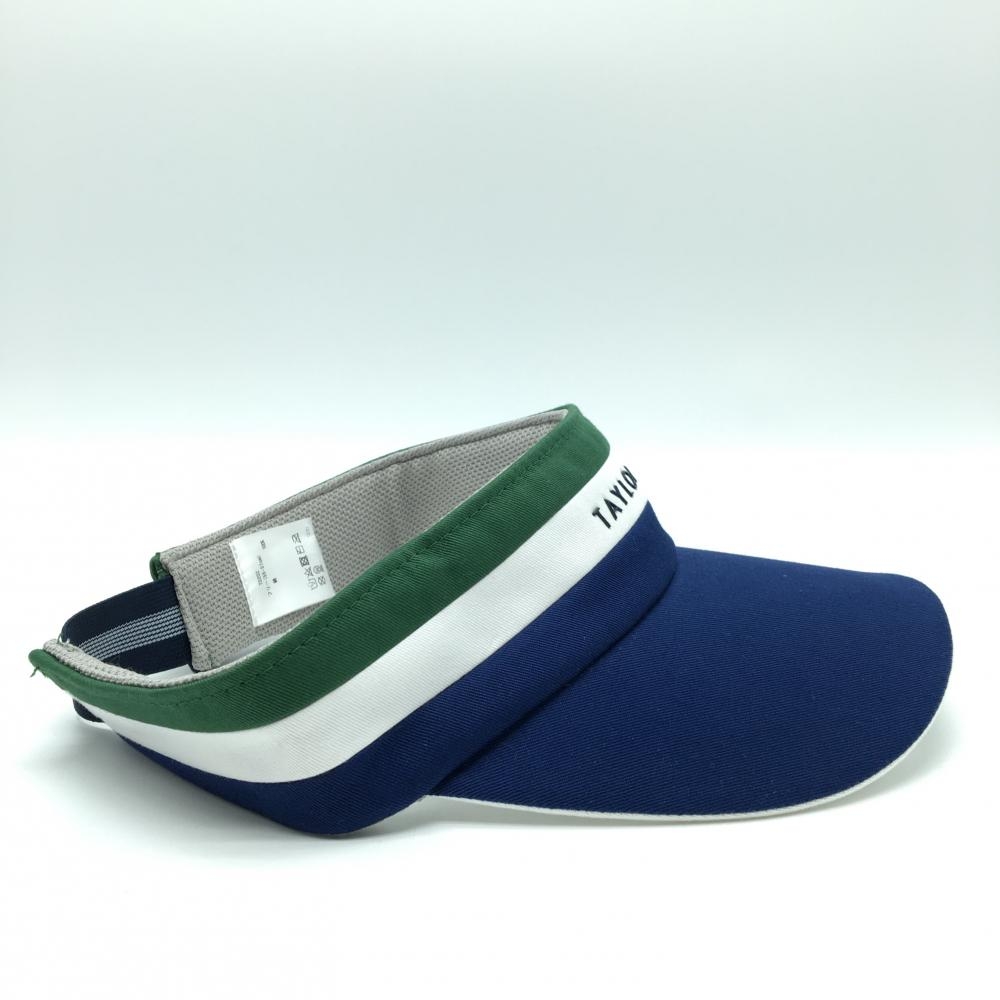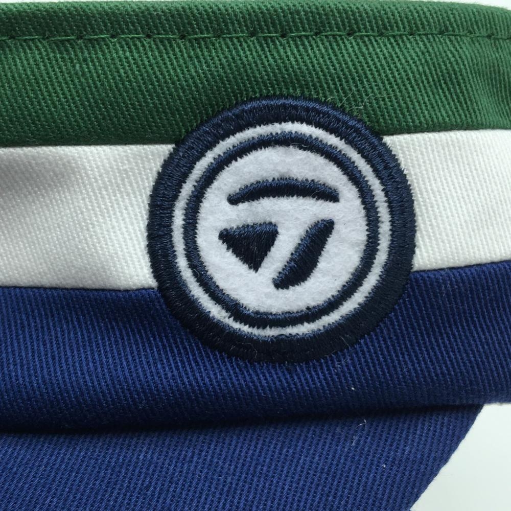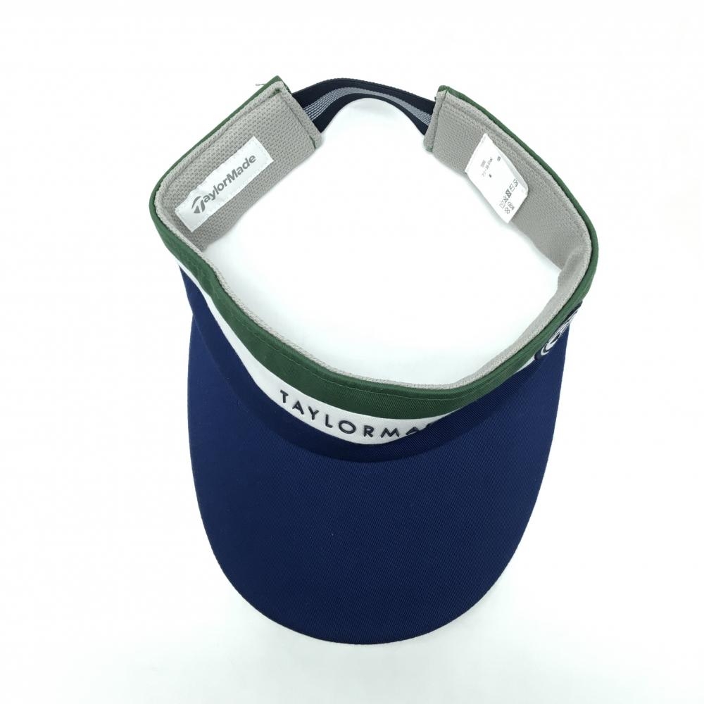 【美品】テーラーメイド サンバイザー ネイビー×グリーン フロントロゴ フリー(55-57cm) ゴルフウェア TaylorMade