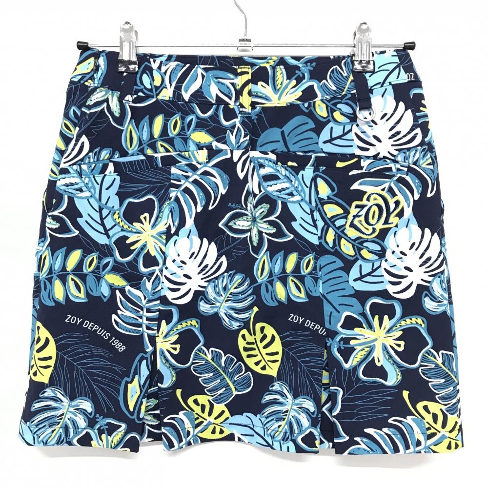 【超美品】ゾーイ スカート ネイビー×イエロー×白 リーフ総柄 レディース 36(S) ゴルフウェア ZOY