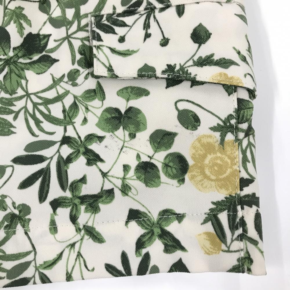 【美品】アディダス ショートパンツ 白×グリーン リーフ総柄 レディース M/M ゴルフウェア adidas