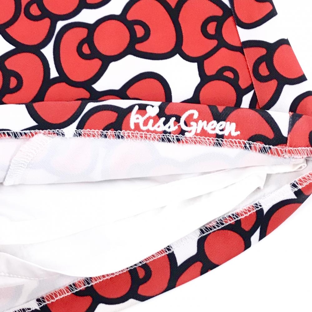 【超美品】キスオンザグリーン×ハローキティ ショートパンツ レッド×白 リボン総柄 レディース 2(M) ゴルフウェア kiss on the green