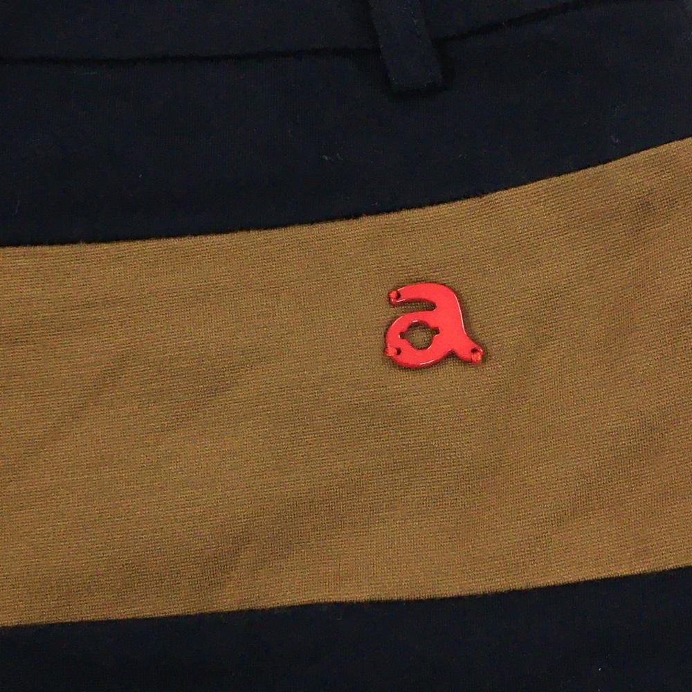 【美品】アルチビオ ショートパンツ ダークネイビー×ブラウン ボーダー 内側インナーパンツ レディース 40(L) ゴルフウェア archivio