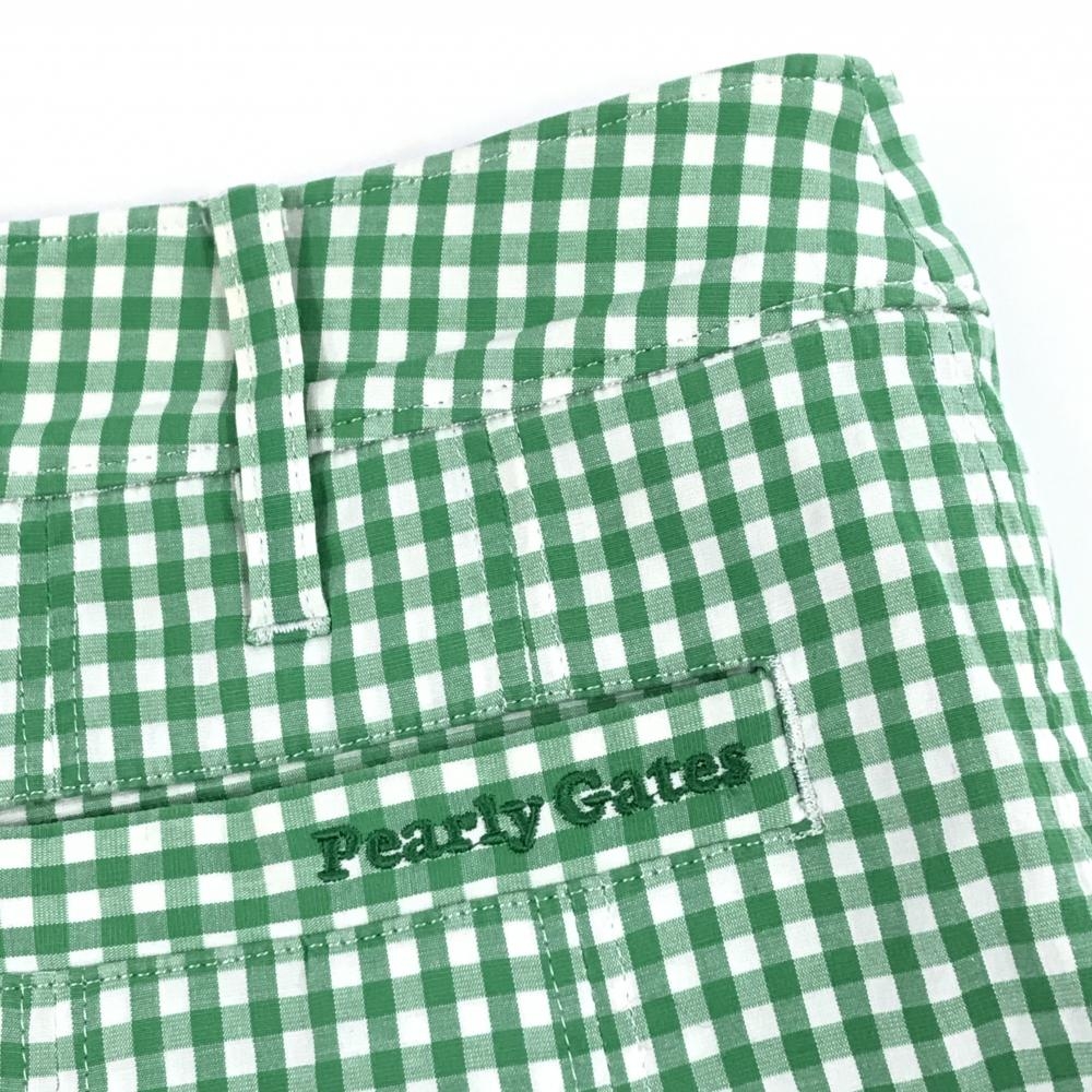 パーリーゲイツ プリーツスカート グリーン×白 ギンガムチェック ストレッチ レディース 0(S) ゴルフウェア PEARLY GATES