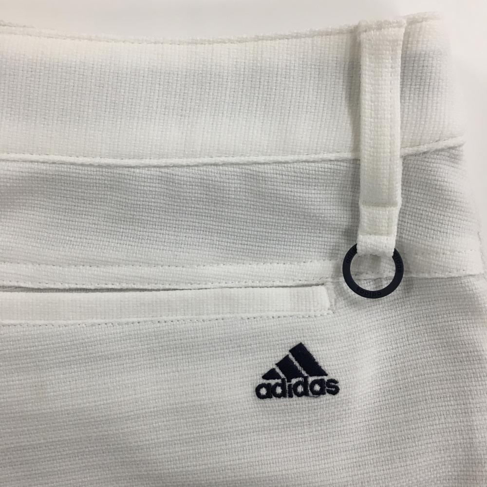 【美品】アディダス ショートパンツ 白×ネイビー 裾ギザギザ柄 ロゴ刺しゅう レディース L/G ゴルフウェア adidas