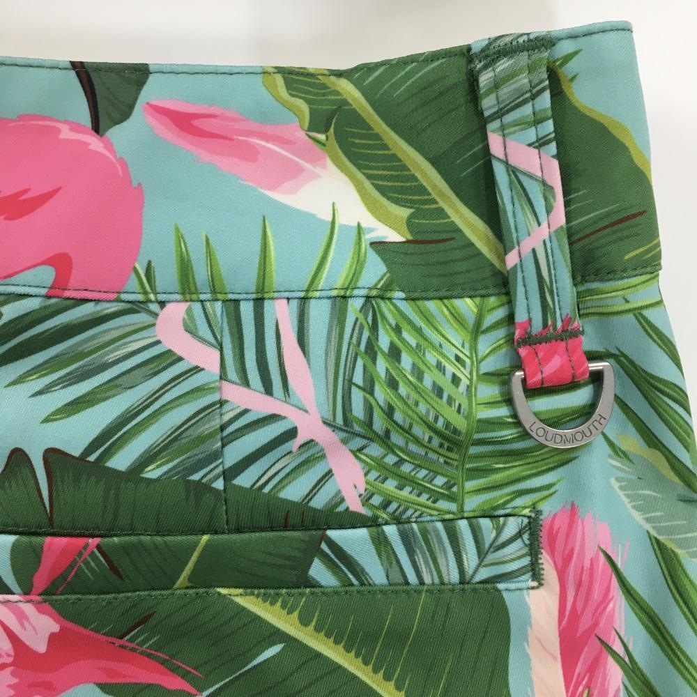 【超美品】ラウドマウス ショートパンツ グリーン×ピンク リーフ・フラミンゴ総柄 レディース M ゴルフウェア LOUDMOUTH