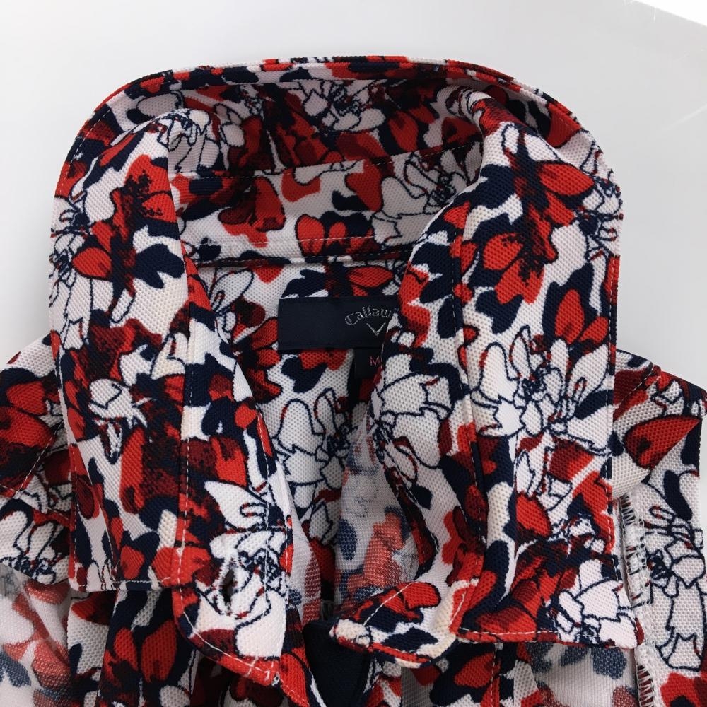 キャロウェイ ノースリーブポロシャツ 白×レッド 花柄 ロゴ刺しゅう レディース M ゴルフウェア Callaway