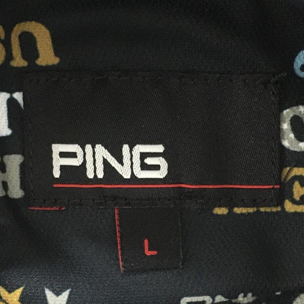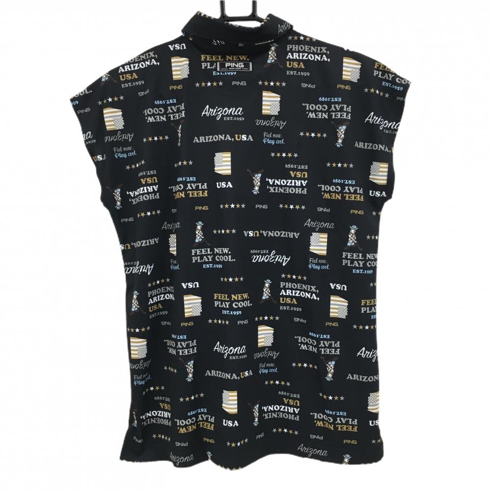 【美品】ピン ノースリーブポロシャツ ダークネイビー×グレー 総柄 レディース L ゴルフウェア PING