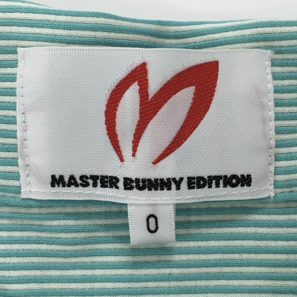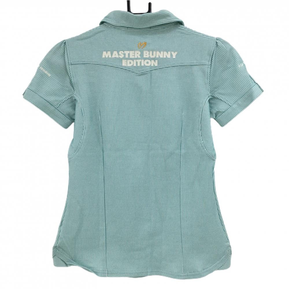 【美品】マスターバニー 半袖ポロシャツ グリーン×白 ストライプ 丸襟 レディース 0(S) ゴルフウェア MASTER BUNNY EDITION