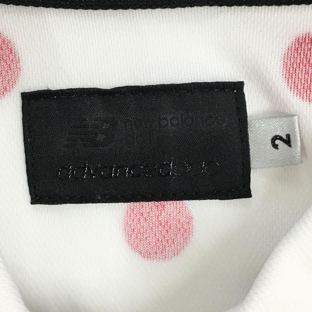 【美品】ニューバランスゴルフ 半袖ポロシャツ 白×レッド ドット柄 ロゴワッペン レディース 2(L) ゴルフウェア New Balance