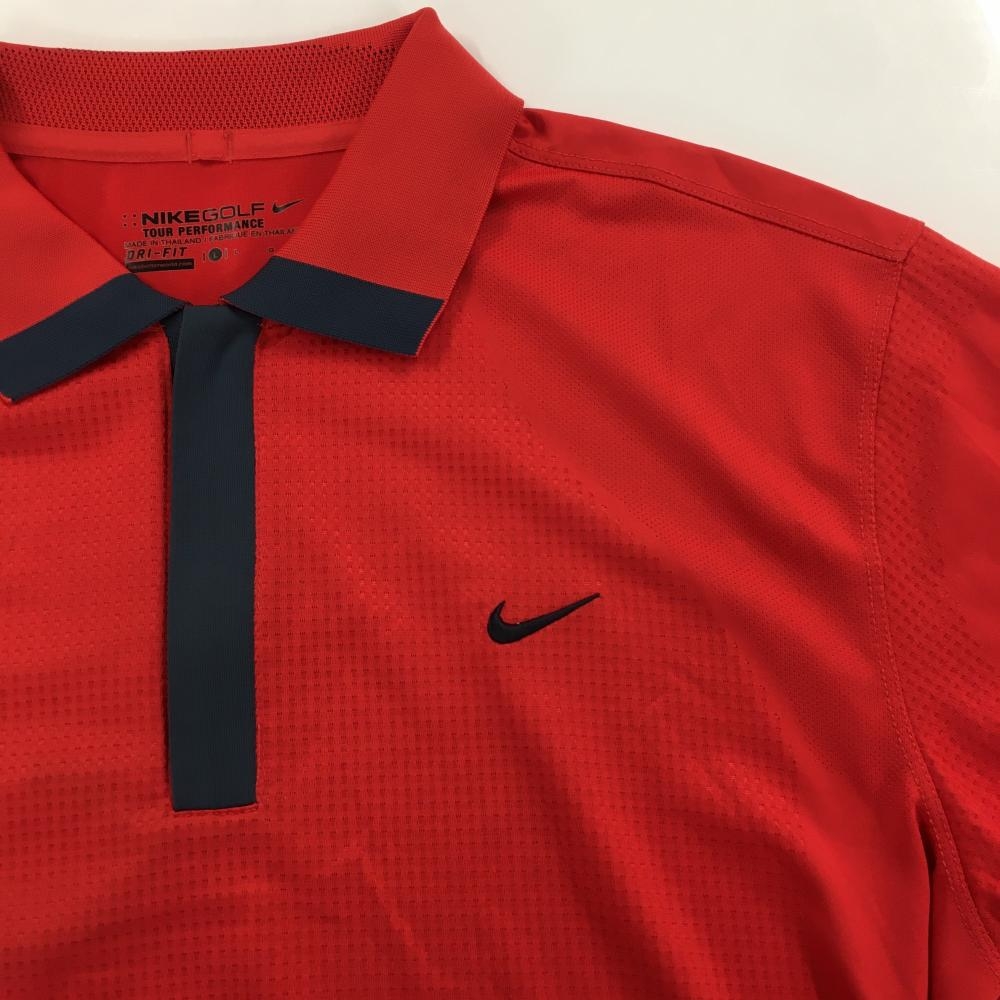 【超美品】ナイキゴルフ 半袖ポロシャツ レッド 一部地模様 ハーフジップ メンズ L ゴルフウェア NIKE