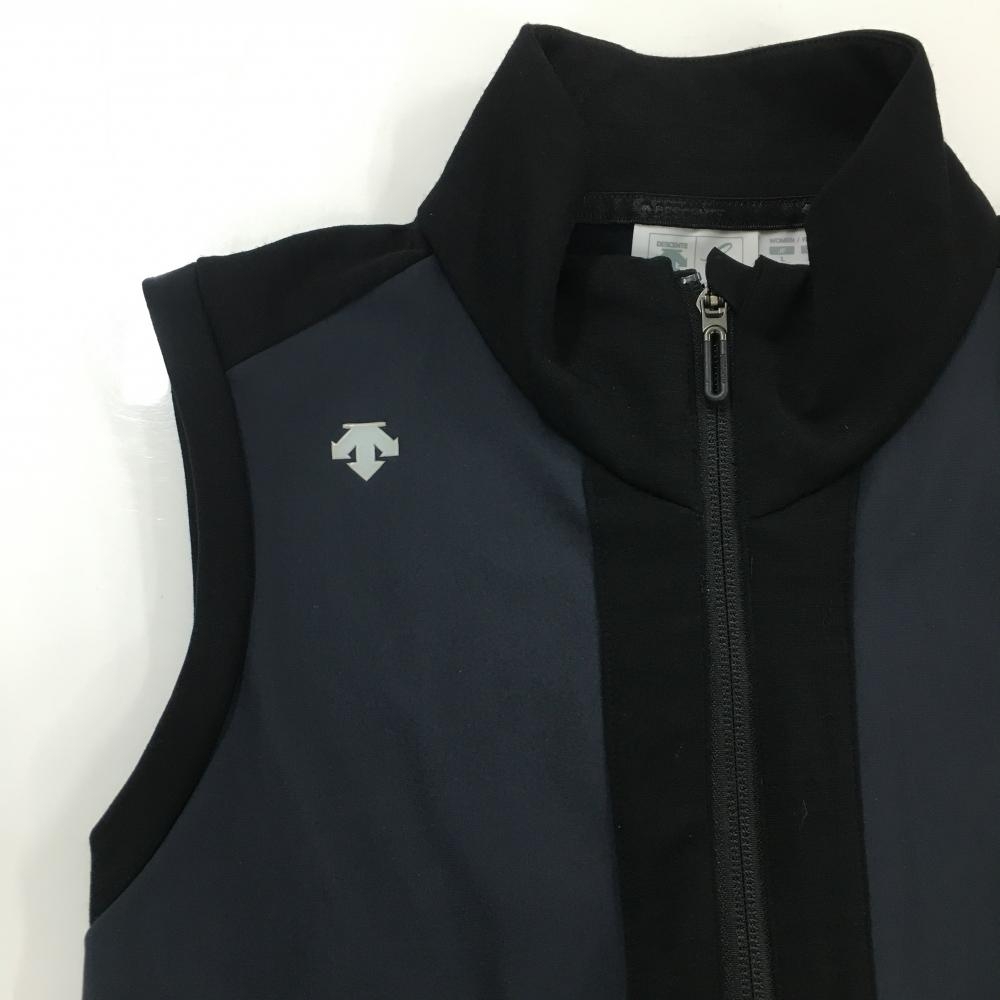 【美品】デサントゴルフ ノースリーブワンピース ネイビー×黒 肩ロゴ 中田英寿 レディース L ゴルフウェア DESCENTE