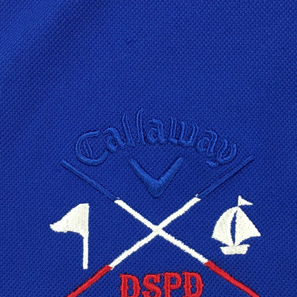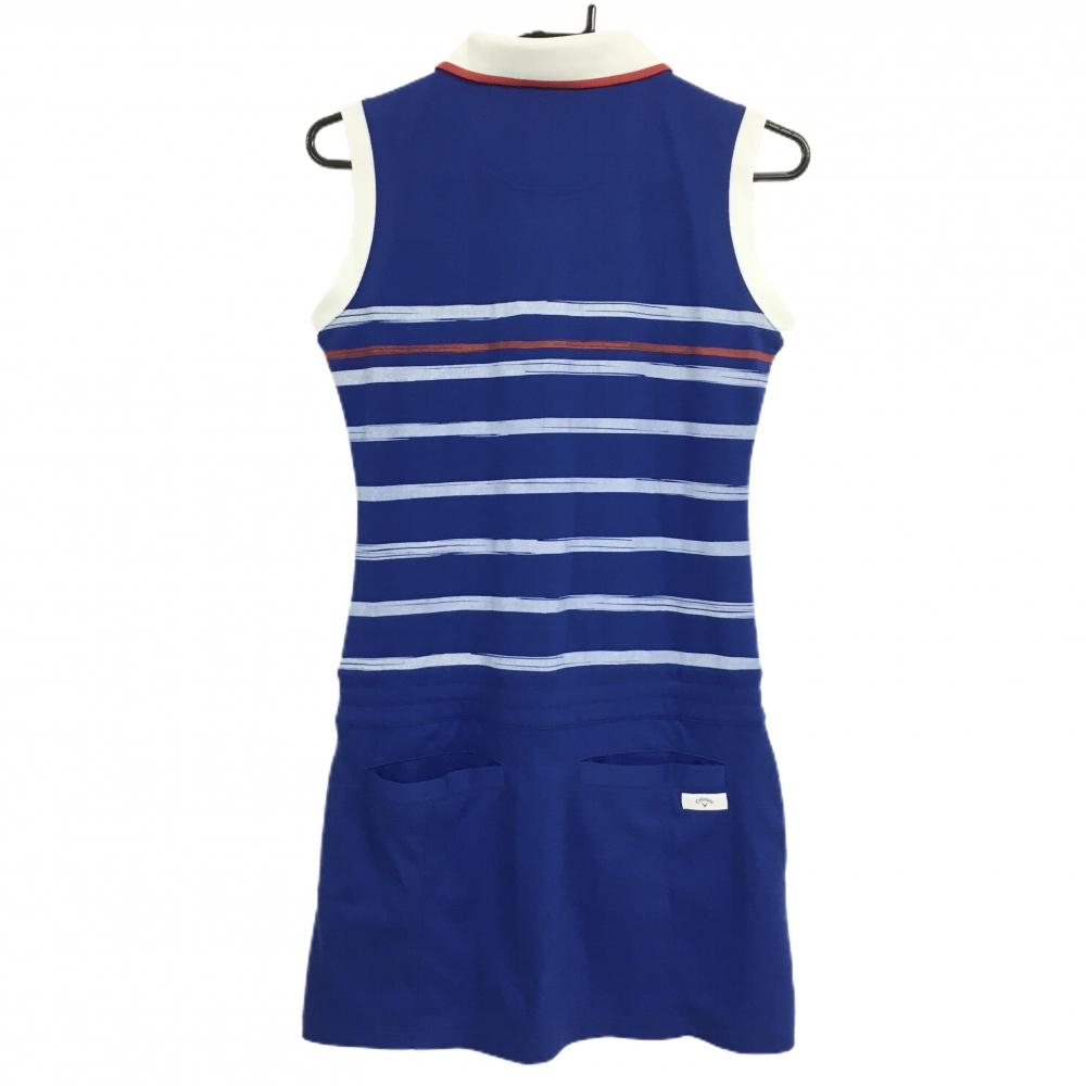 【美品】キャロウェイ ノースリーブポロワンピース ブルー×白 上半身ボーダー ロゴ刺しゅう レディース M ゴルフウェア Callaway