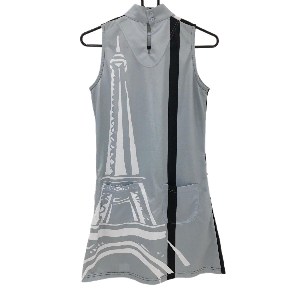 【美品】エフィカス ノースリーブハイネックワンピース 黒×グレー 背面総柄 レディース M ゴルフウェア efficace