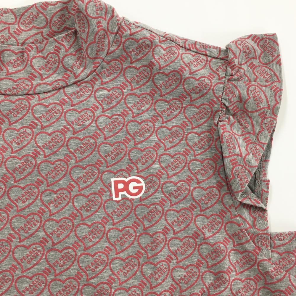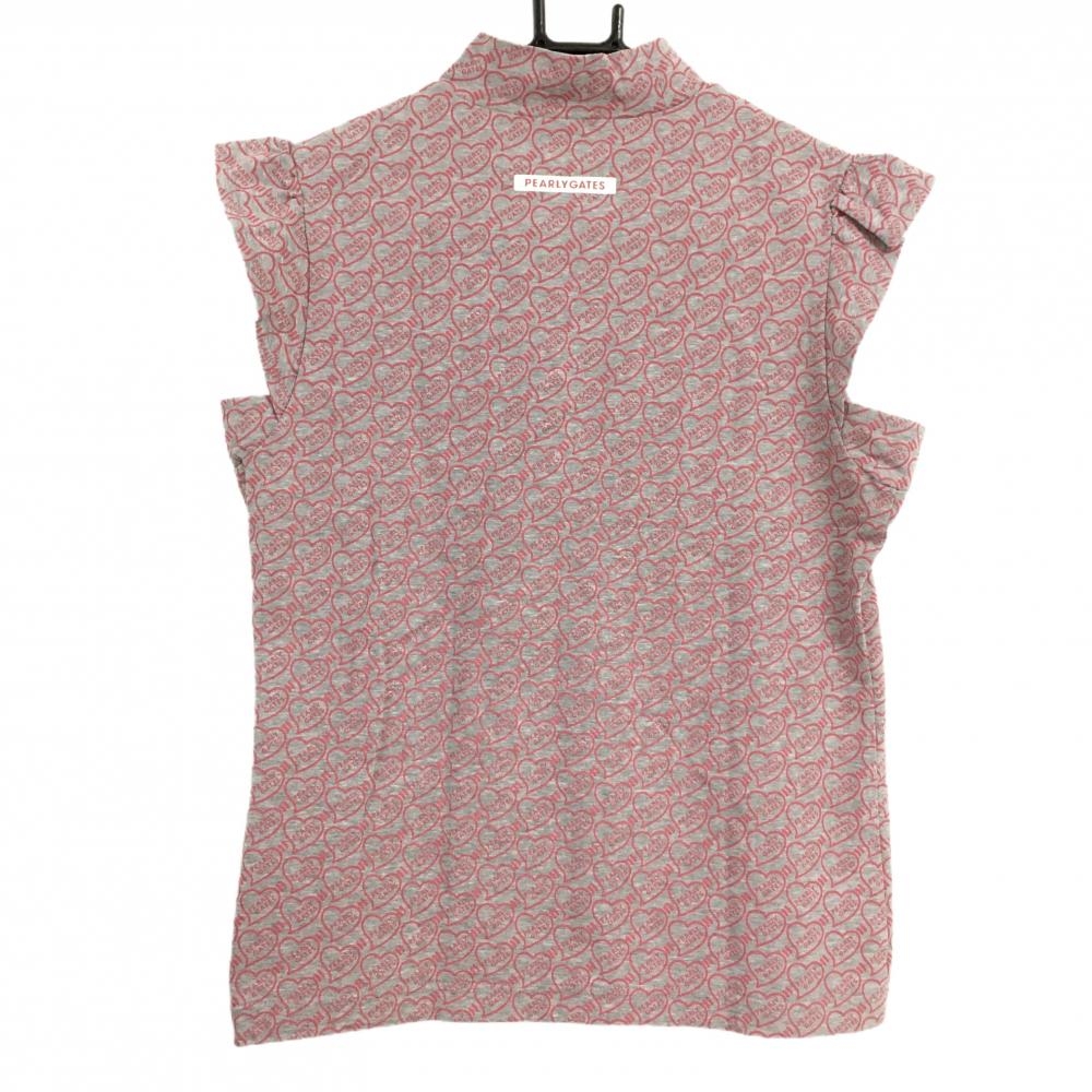 【超美品】パーリーゲイツ ノースリーブハイネックシャツ グレー×ピンク ハート柄 ロゴ レディース 0(S) ゴルフウェア PEARLY GATES