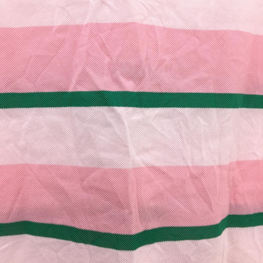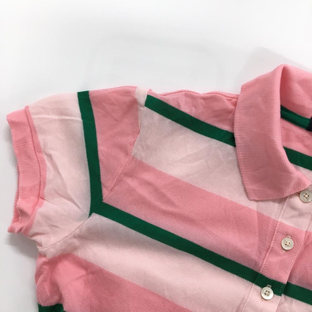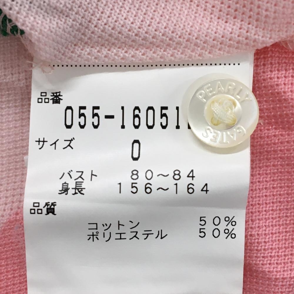 【美品】パーリーゲイツ 半袖ポロシャツ ピンク×グリーン ボーダー ロゴプリント レディース 0(S) ゴルフウェア PEARLY GATES