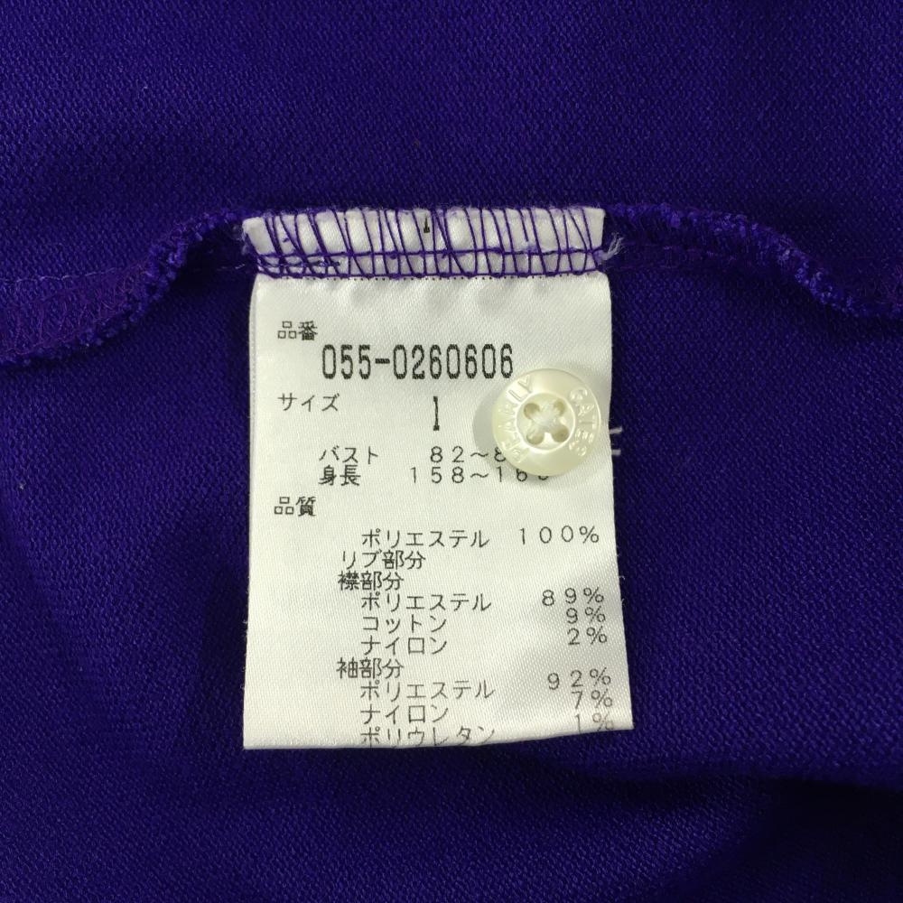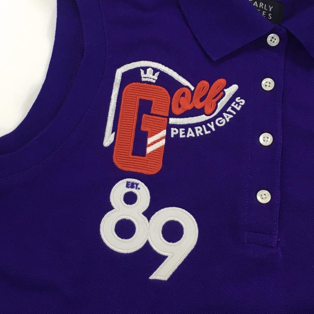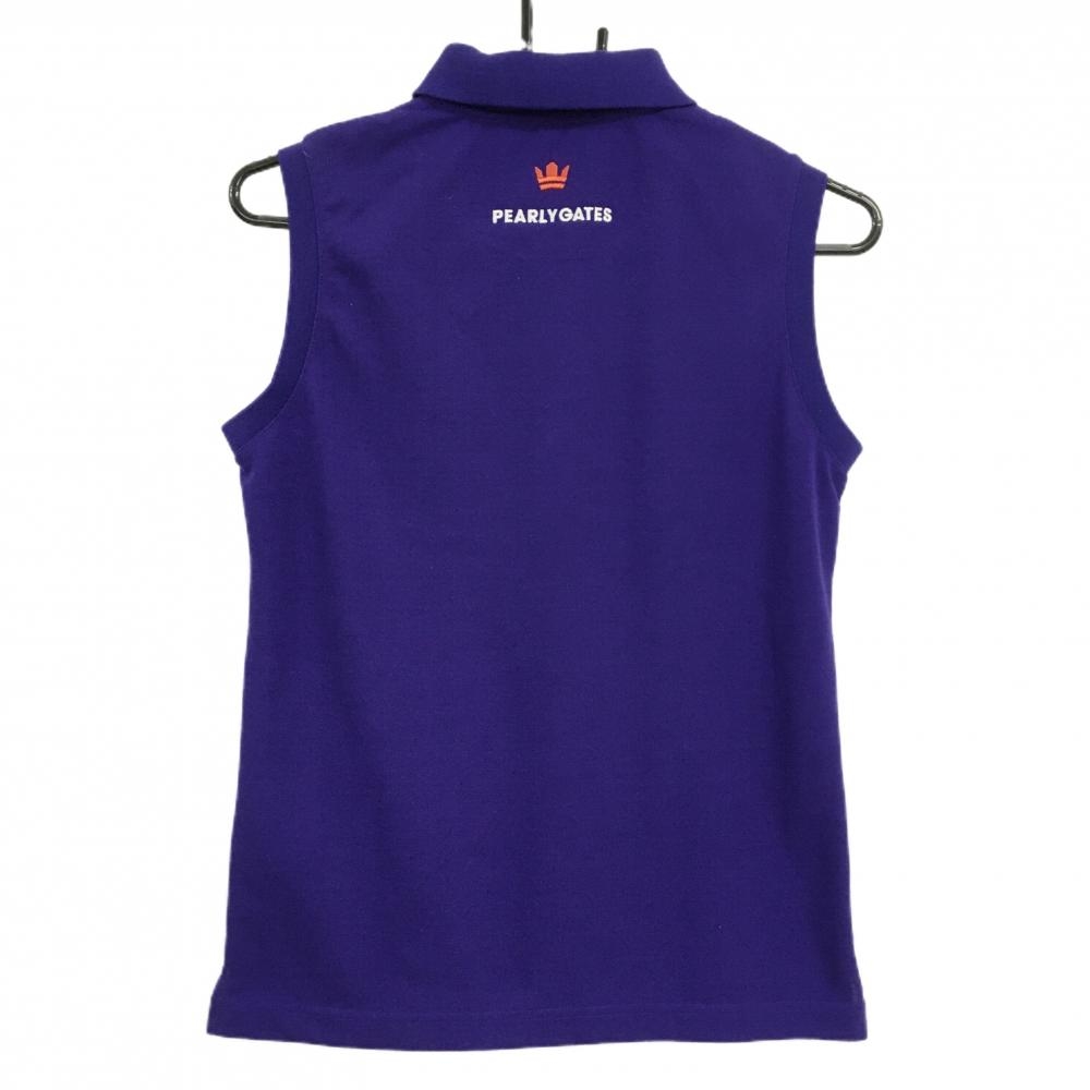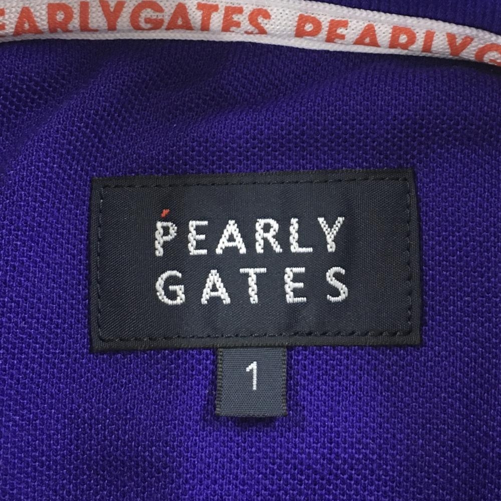 【超美品】パーリーゲイツ 半袖ポロシャツ パープル×オレンジ ロゴ刺しゅう 襟裏ライン レディース 1(M) ゴルフウェア PEARLY GATES