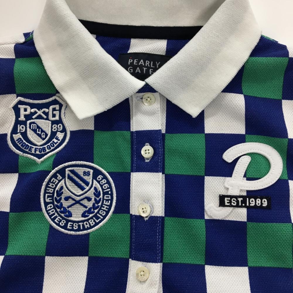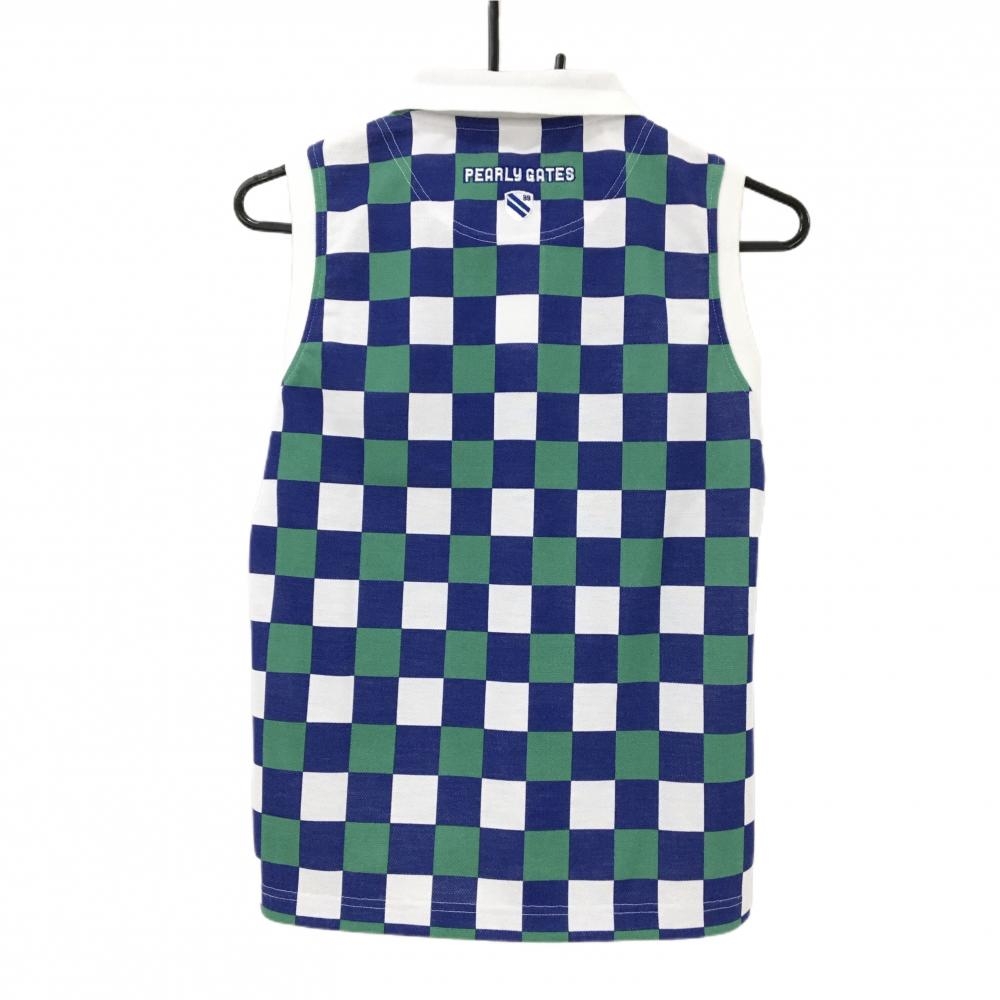 【美品】パーリーゲイツ ノースリーブポロシャツ ネイビー×グリーン ブロックチェック レディース 0(S) ゴルフウェア PEARLY GATES