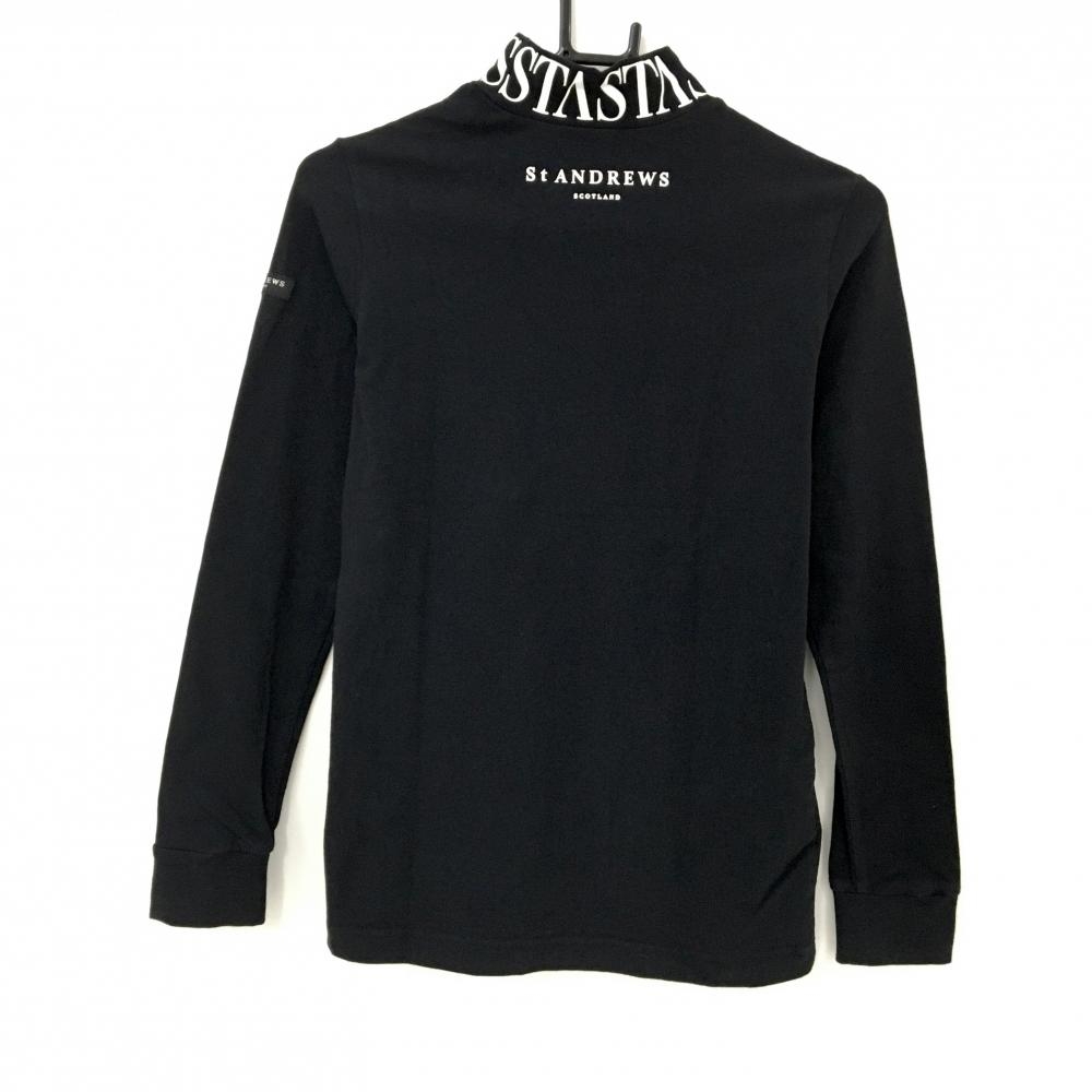 【美品】セントアンドリュース 長袖ハイネックシャツ 黒×白 ネックロゴ レディース M ゴルフウェア St ANDREWS