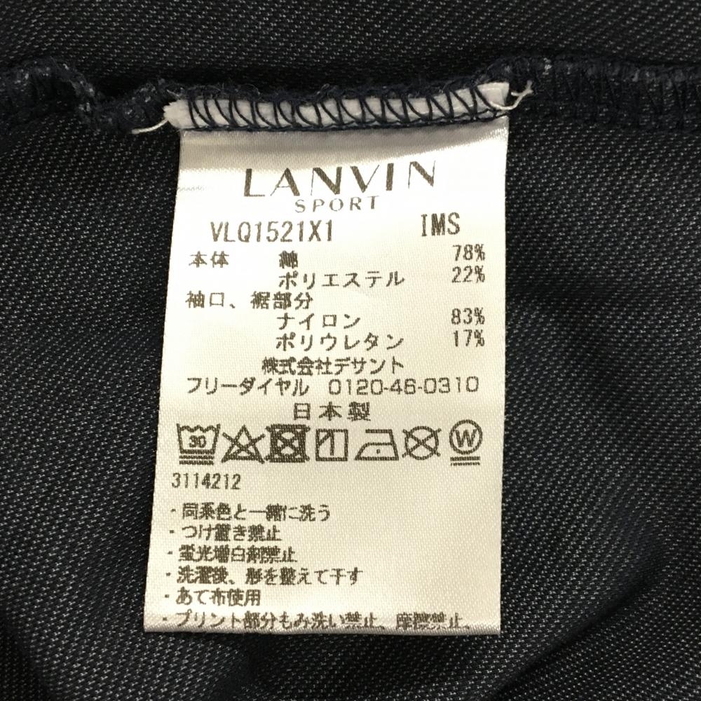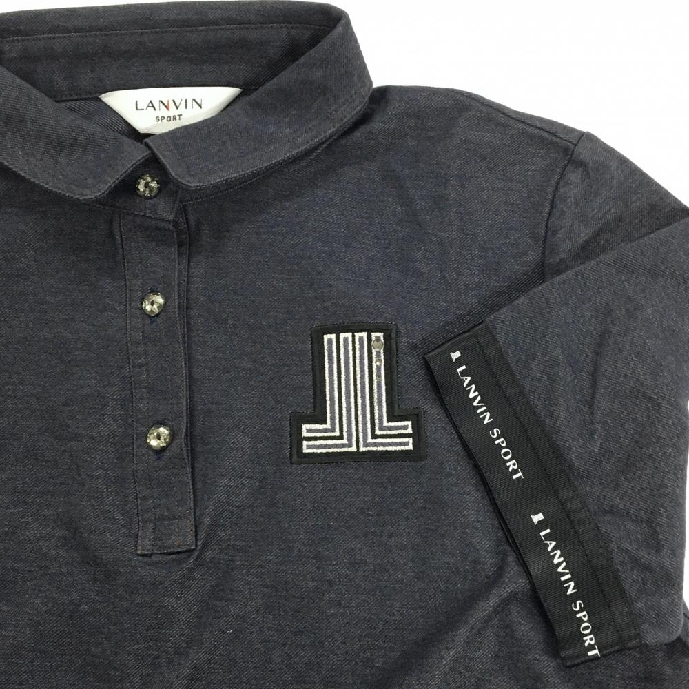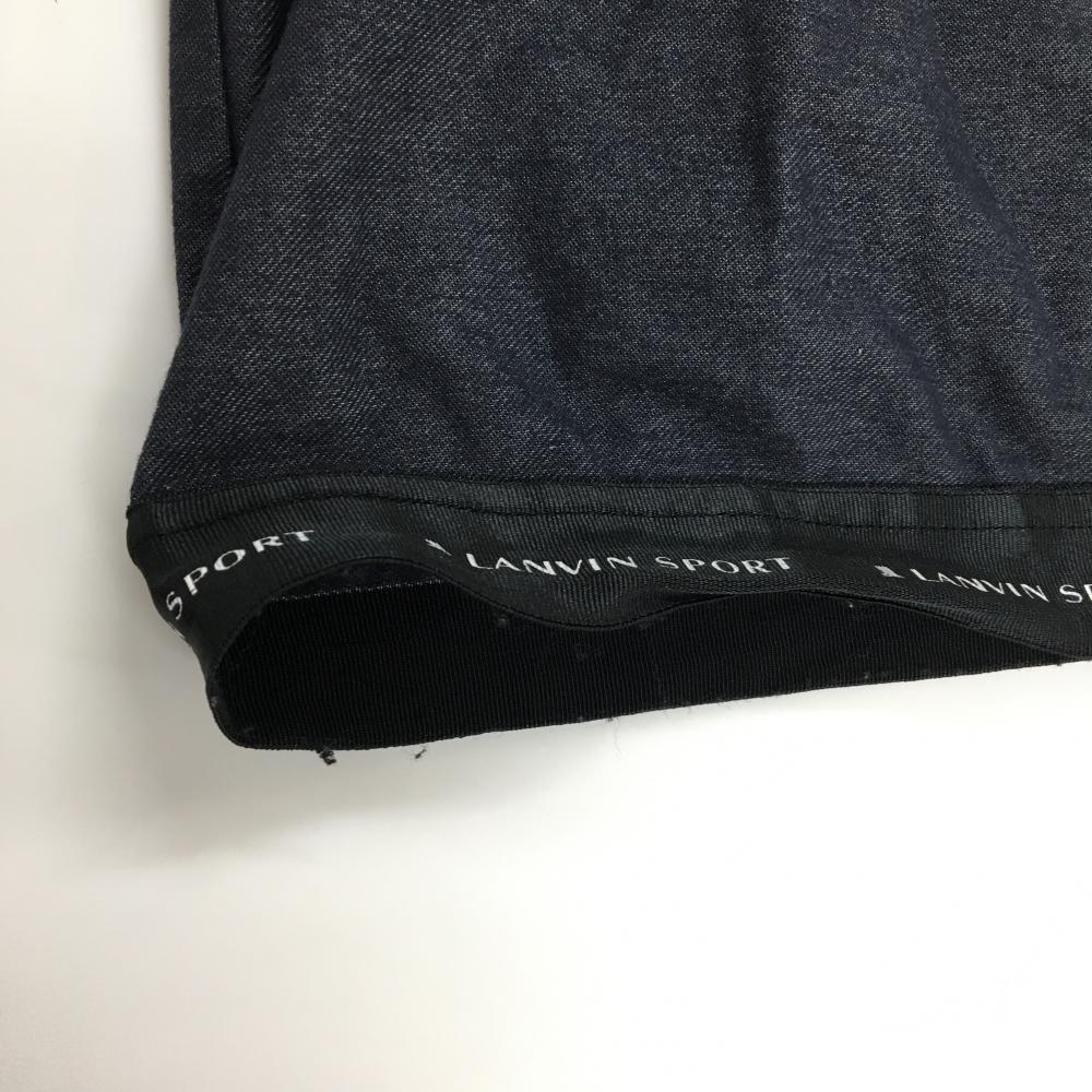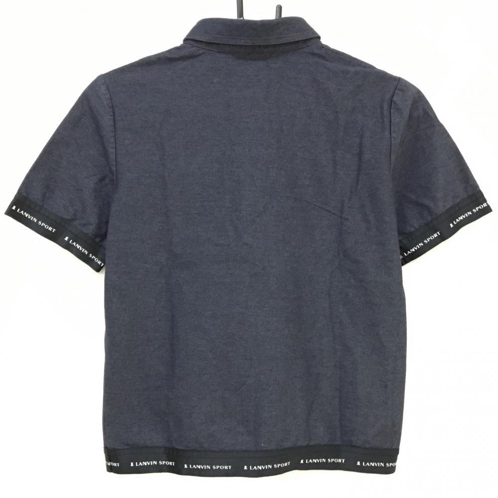 【美品】ランバンスポール 半袖ポロシャツ ネイビー×黒 デニム調 袖口・裾ロゴ レディース 38(M) ゴルフウェア LANVIN SPORT