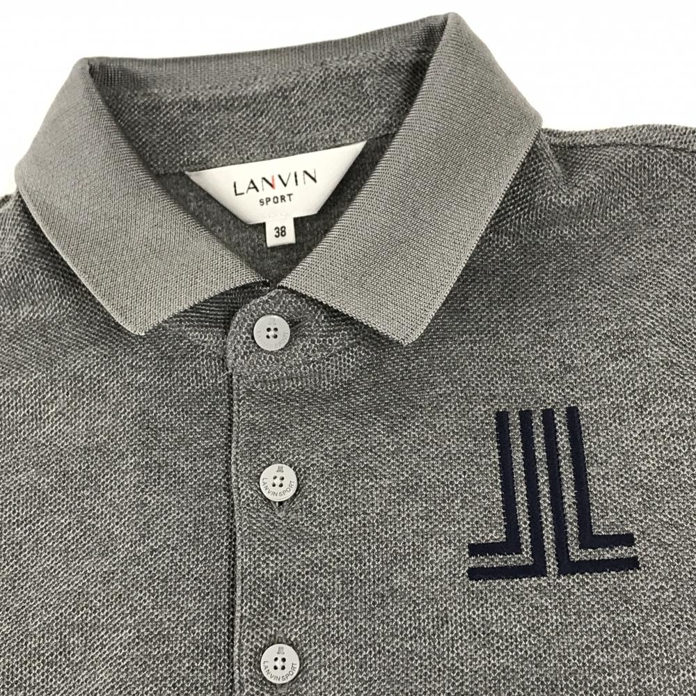 【超美品】ランバンスポール 半袖ポロシャツ グレー×ネイビー ロゴ刺しゅう メンズ 38(M) ゴルフウェア LANVIN SPORT