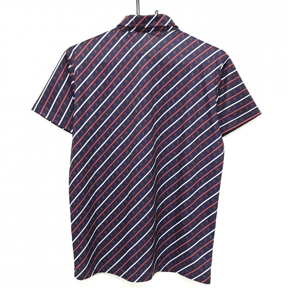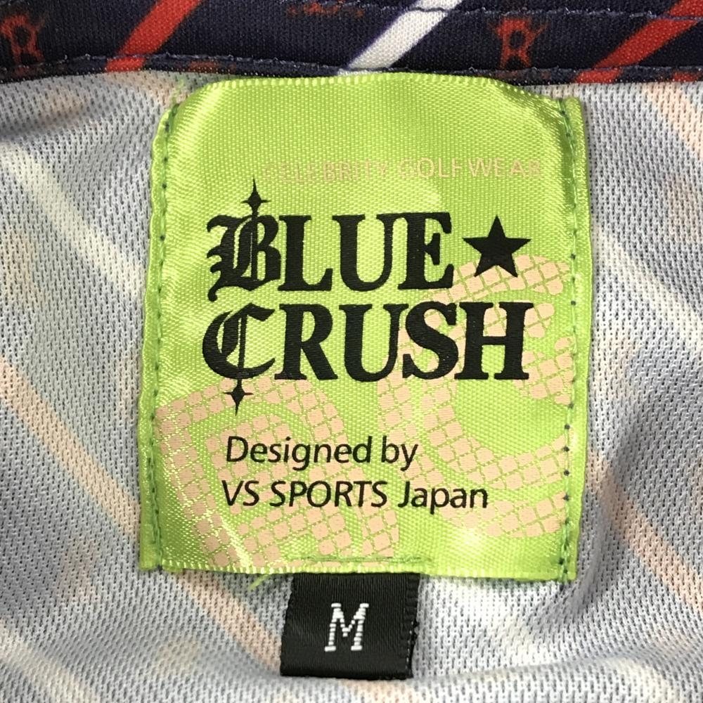 【超美品】ブルークラッシュ 半袖ポロシャツ ネイビー×レッド 斜めストライプ・ロゴ ボタンダウン メンズ M ゴルフウェア BLUE CRUSH